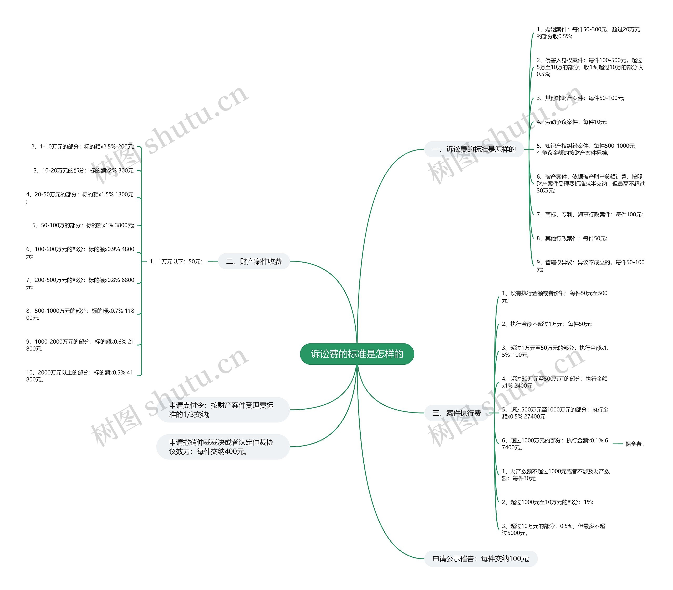 树图思维导图提供《诉讼费的标准是怎样的》在线思维导图免费制作,点击“编辑”按钮,可对《诉讼费的标准是怎样的》进行在线思维导图编辑,本思维导图属于思维导图模板主题,文件编号是:f94e6651e0f616682b0a729d940aa0a2