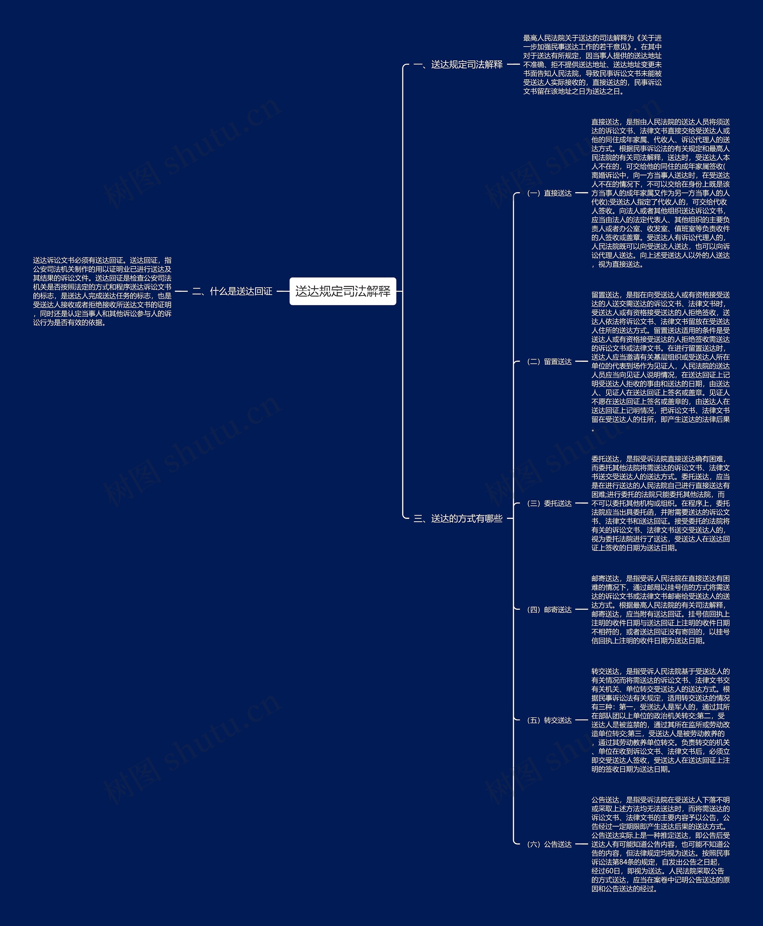 树图思维导图提供《送达规定司法解释》在线思维导图免费制作,点击“编辑”按钮,可对《送达规定司法解释》进行在线思维导图编辑,本思维导图属于思维导图模板主题,文件编号是:8e7ca6b8f31597e42cf3d8040c2a7a57