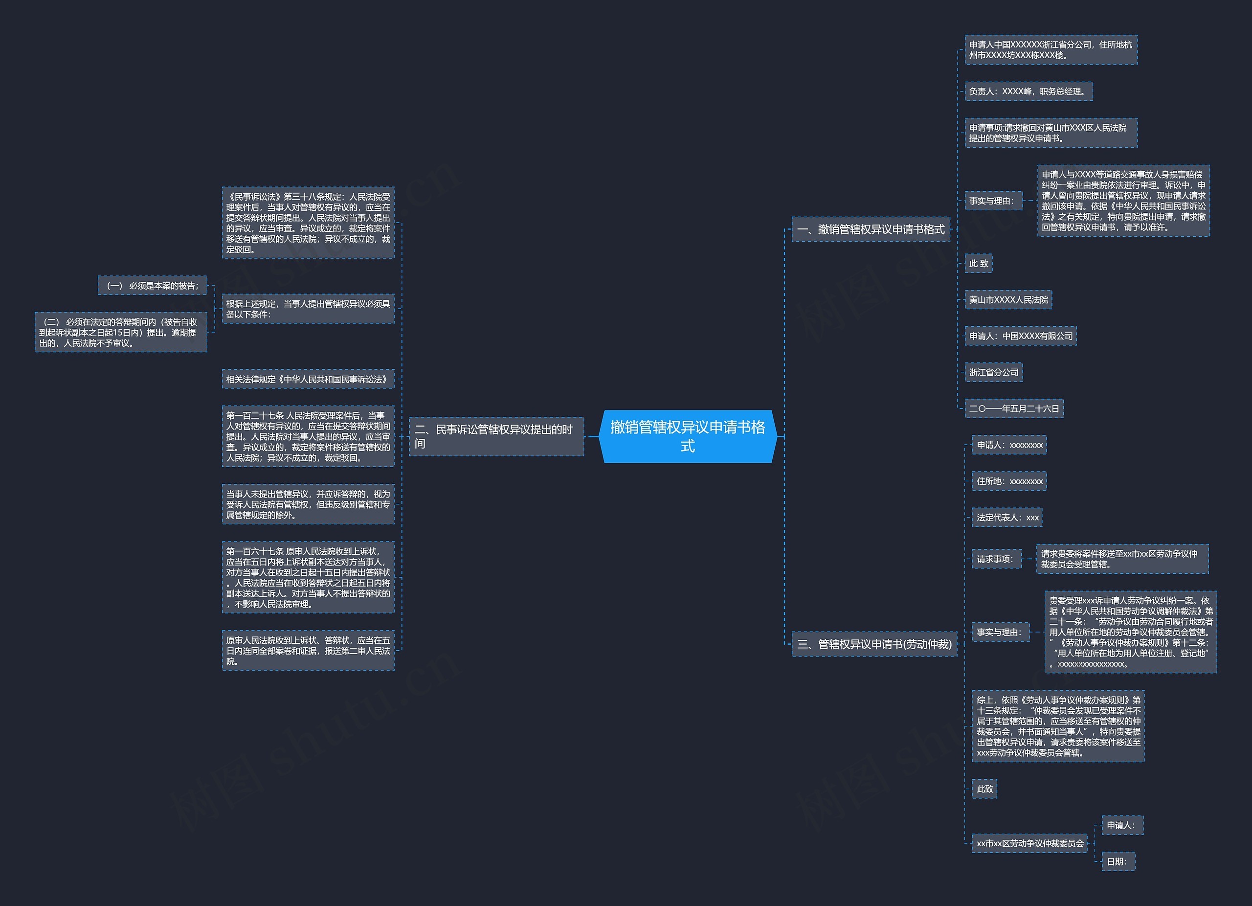 树图思维导图提供《撤销管辖权异议申请书格式》在线思维导图免费制作,点击“编辑”按钮,可对《撤销管辖权异议申请书格式》进行在线思维导图编辑,本思维导图属于思维导图模板主题,文件编号是:37e36aea5d0c8c617a4fb9a1dd7c182d