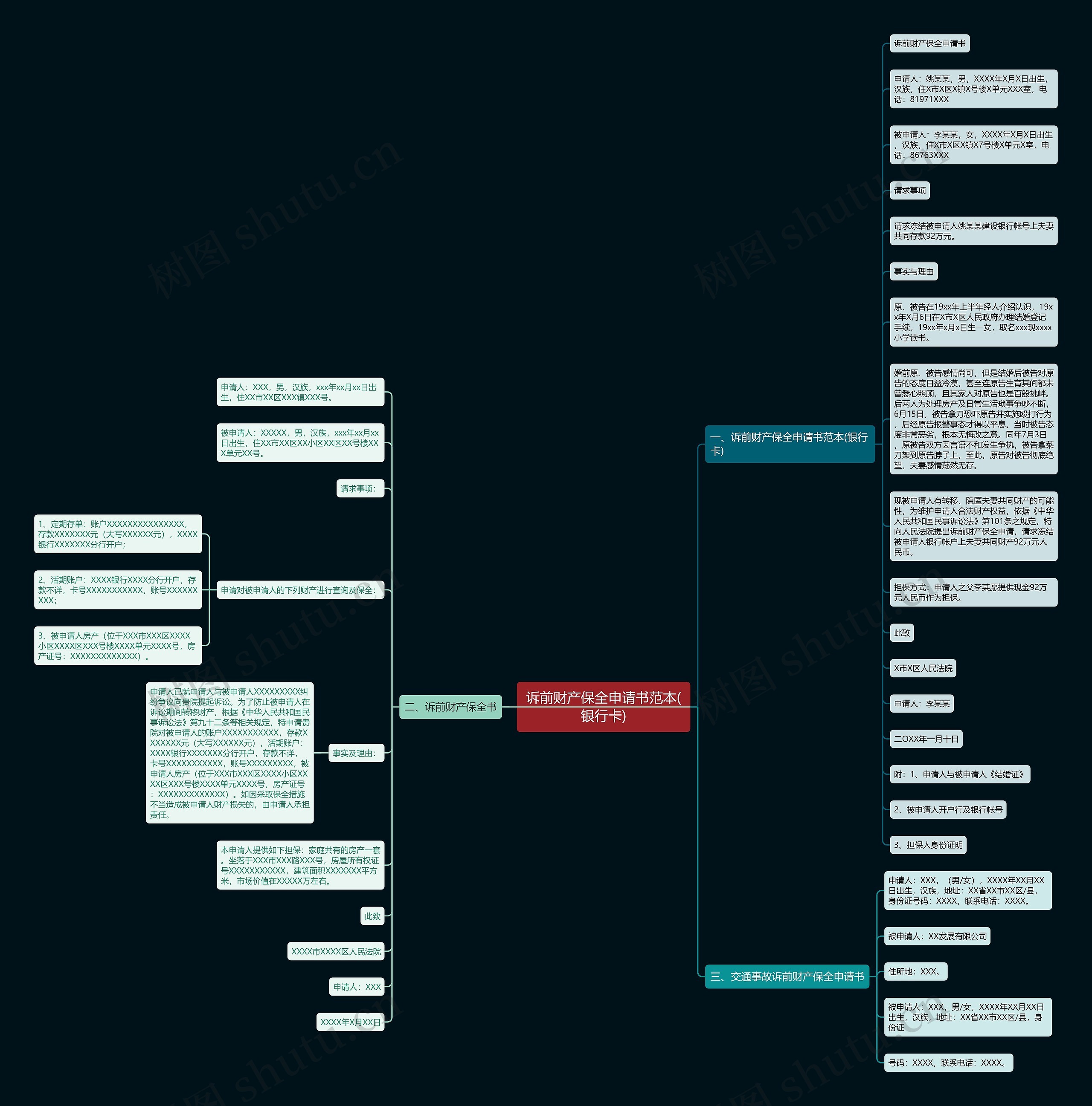 诉前财产保全申请书范本(银行卡)思维导图