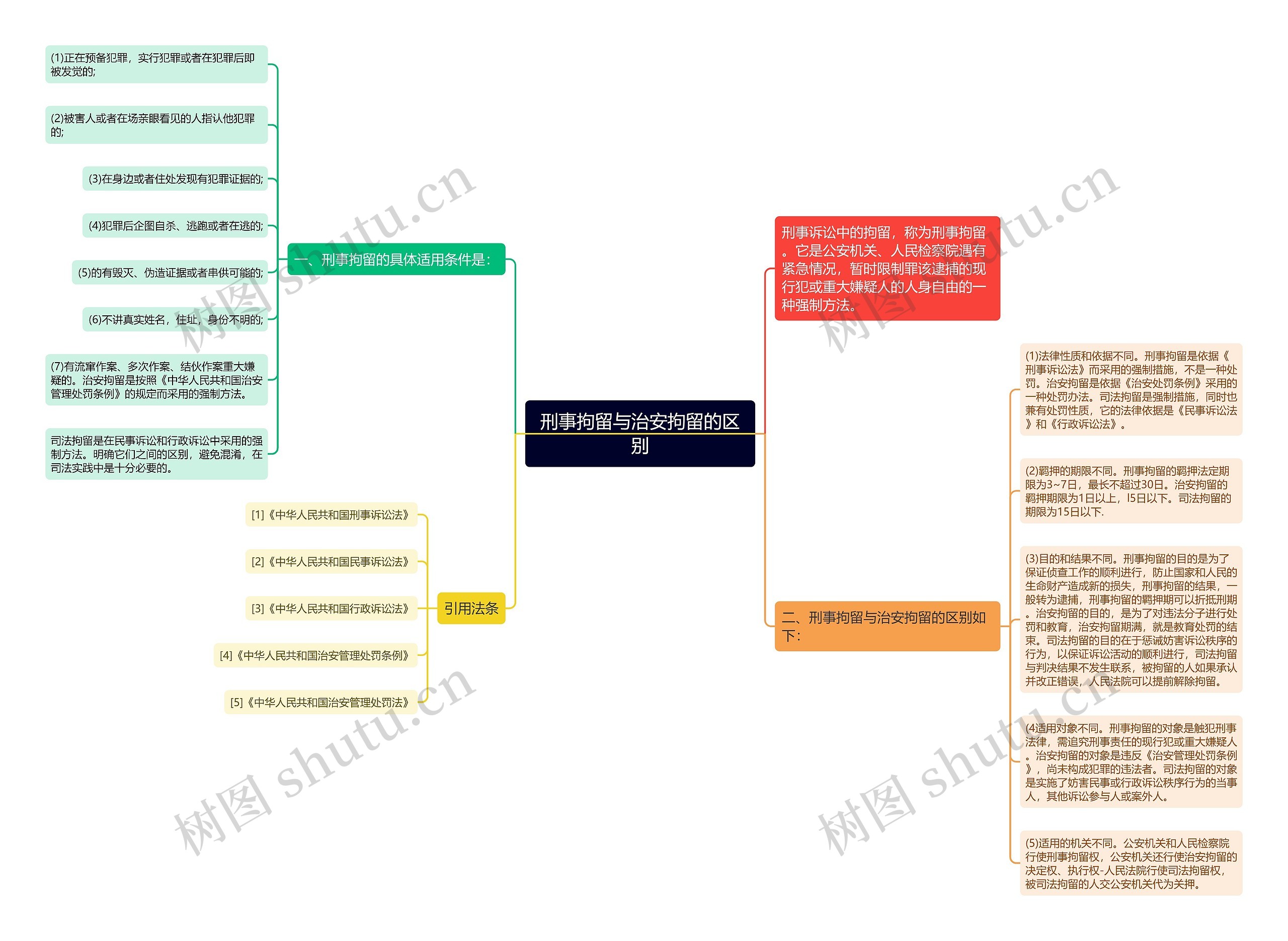 (5)适用的机关不同。公安机关和人民检察院行使刑事拘留权,公安机关还行使治安拘留的决定权、执行权-人民法院行使司法拘留权,被司法拘留的人交公安机关代为关押。