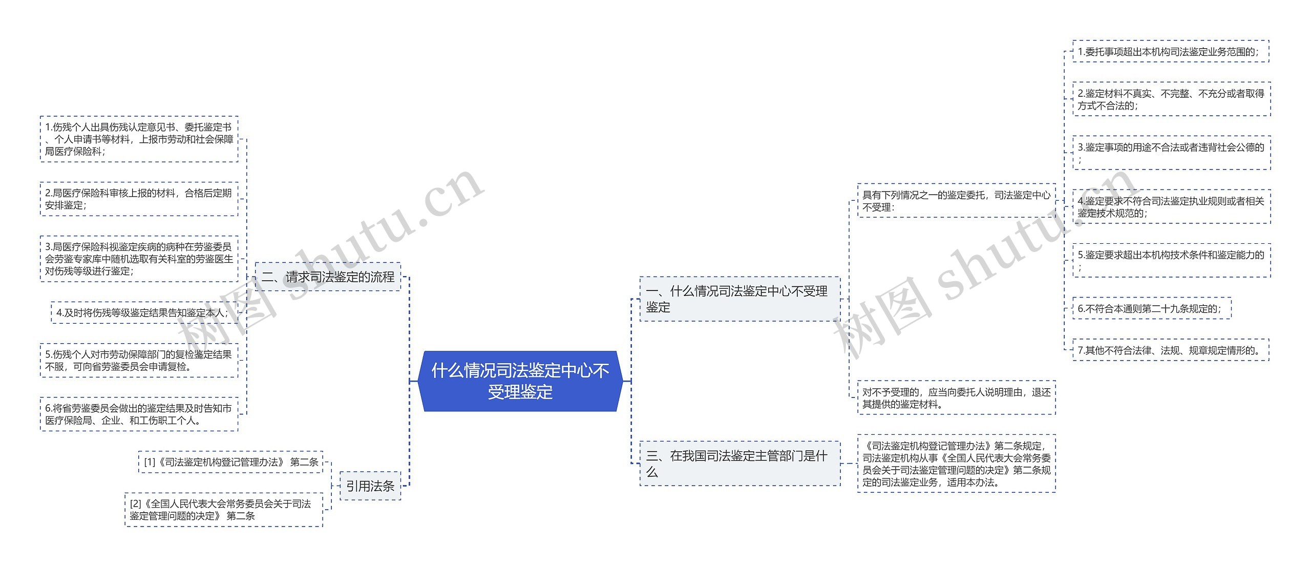 树图思维导图提供《什么情况司法鉴定中心不受理鉴定》在线思维导图免费制作,点击“编辑”按钮,可对《什么情况司法鉴定中心不受理鉴定》进行在线思维导图编辑,本思维导图属于思维导图模板主题,文件编号是:64d3514d477165c6f13b991e7ac8bf6a