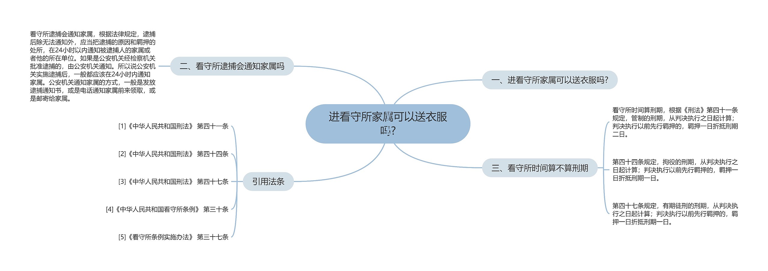 树图思维导图提供《进看守所家属可以送衣服吗?》在线思维导图免费制作,点击“编辑”按钮,可对《进看守所家属可以送衣服吗?》进行在线思维导图编辑,本思维导图属于思维导图模板主题,文件编号是:20f65785f617ba310a2374e9831cf342