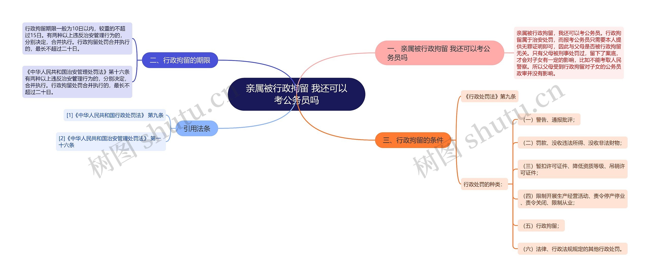 树图思维导图提供《亲属被行政拘留 我还可以考公务员吗》在线思维导图免费制作,点击“编辑”按钮,可对《亲属被行政拘留 我还可以考公务员吗》进行在线思维导图编辑,本思维导图属于思维导图模板主题,文件编号是:5ececf0568ad47e93e568427aadb8efb