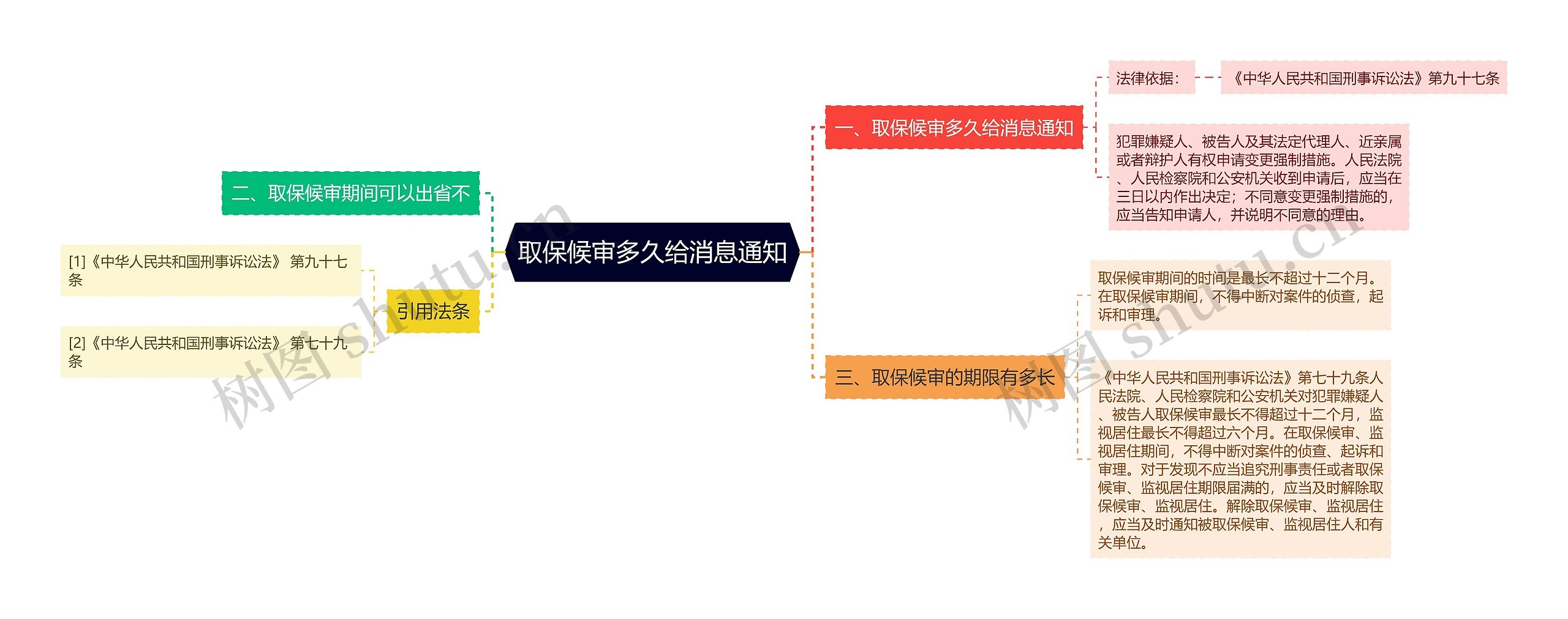 树图思维导图提供《取保候审多久给消息通知》在线思维导图免费制作,点击“编辑”按钮,可对《取保候审多久给消息通知》进行在线思维导图编辑,本思维导图属于思维导图模板主题,文件编号是:1963b25a66a598e0597db8f67f4564c6