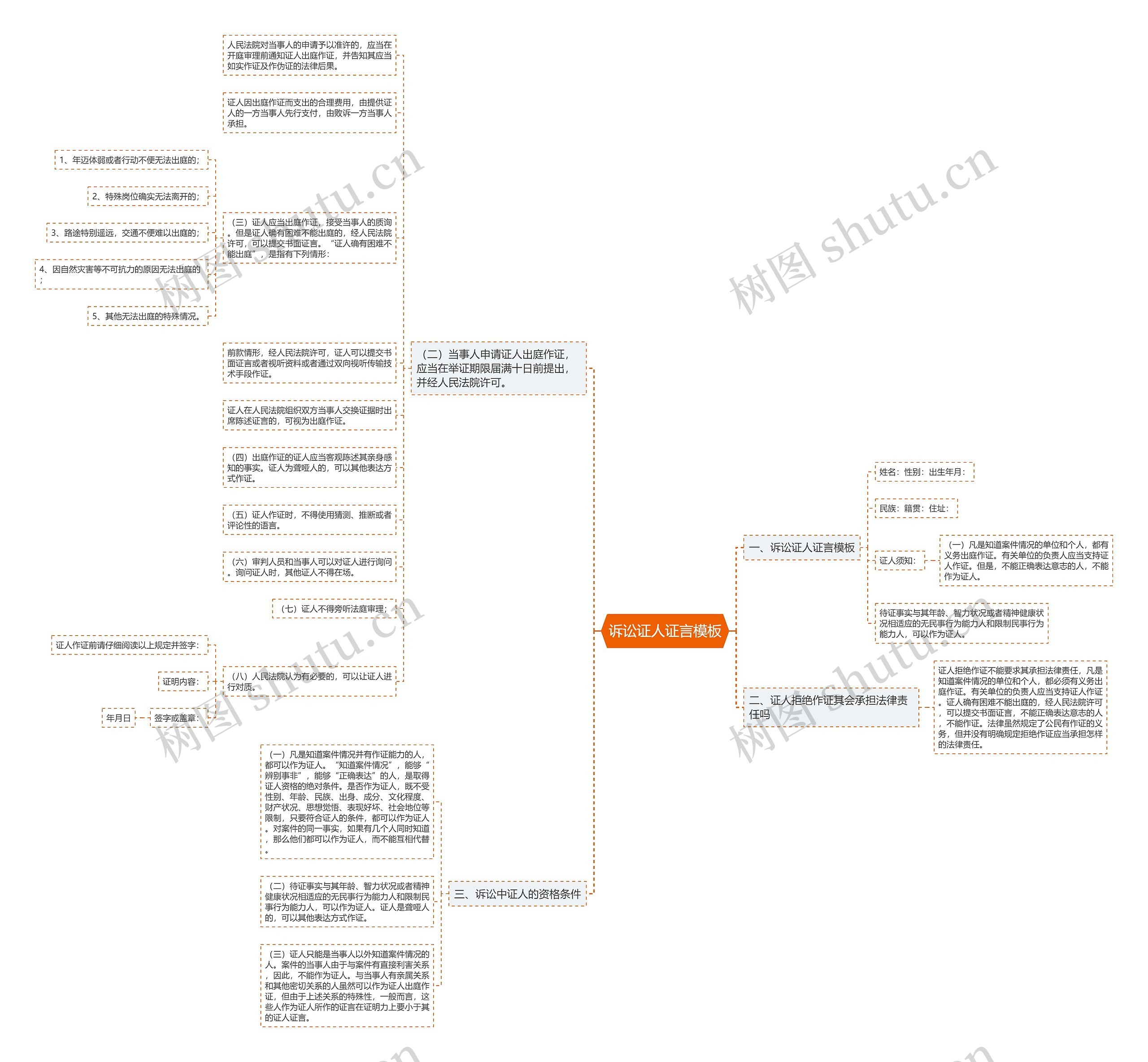树图思维导图提供《诉讼证人证言模板》在线思维导图免费制作,点击“编辑”按钮,可对《诉讼证人证言模板》进行在线思维导图编辑,本思维导图属于思维导图模板主题,文件编号是:3dd45a9e188229749eb5a21a2047a963