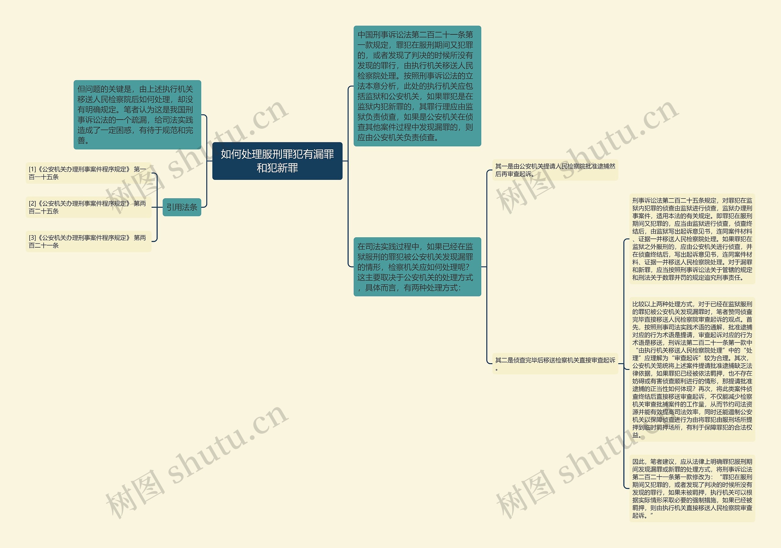 刑事诉讼法第二百二十五条规定,对罪犯在监狱内犯罪的侦查由监狱进行侦查,监狱办理刑事案件,适用本法的有关规定。即罪犯在服刑期间又犯罪的,应当由监狱进行侦查,侦查终结后,由监狱写出起诉意见书,连同案件材料、证据一并移送人民检察院处理。如果罪犯在监狱之外服刑的,应由公安机关进行侦查,并在侦查终结后,写出起诉意见书,连同案件材料、证据一并移送人民检察院处理。对于漏罪和新罪,应当按照刑事诉讼法关于管辖的规定和刑法关于数罪并罚的规定追究刑事责任。