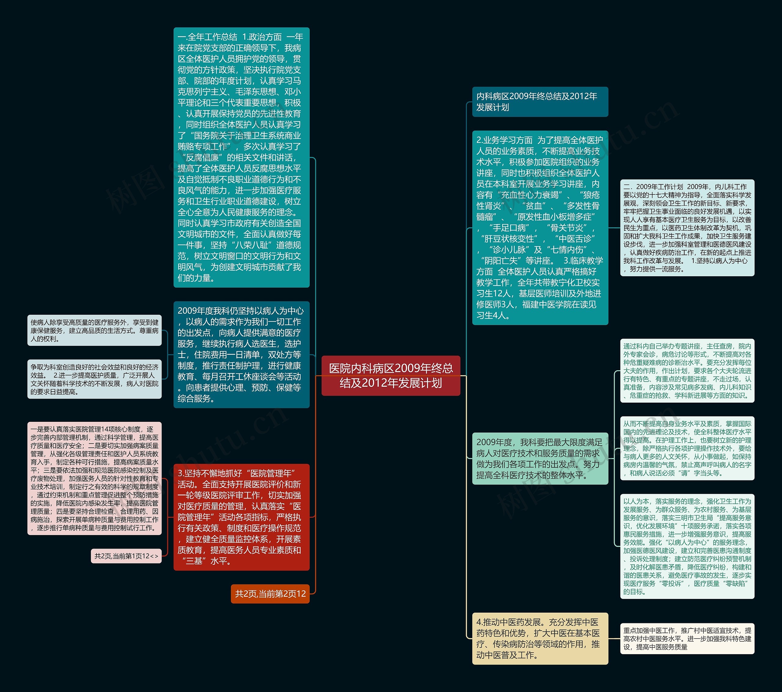 二.2009年工作计划 2009年,内儿科工作要以党的十七大精神为指导,全面落实科学发展观,深刻领会卫生工作的新目标、新要求,牢牢把握卫生事业面临的良好发展机遇,以实现人人享有基本医疗卫生服务为目标,以改善民生为重点,以医药卫生体制改革为契机,巩固和扩大我科卫生工作成果,加快卫生服务建设步伐,进一步加强科室管理和医德医风建设,认真做好疾病防治工作,在新的起点上推进我科工作改革与发展。 1.坚持以病人为中心,努力提供一流服务。