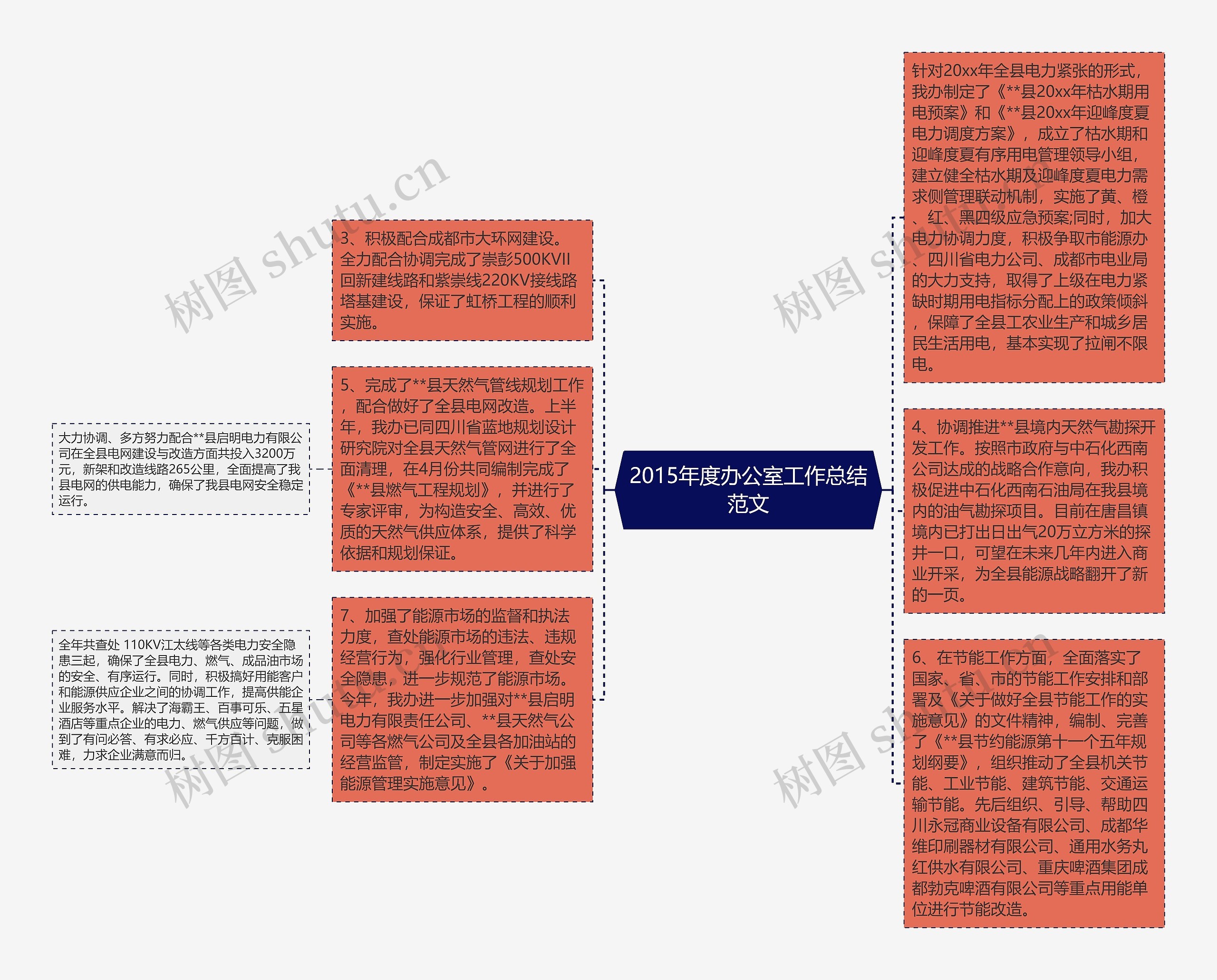 针对20xx年全县电力紧张的形式,我办制定了《**县20xx年枯水期用电预案》和《**县20xx年迎峰度夏电力调度方案》,成立了枯水期和迎峰度夏有序用电管理领导小组,建立健全枯水期及迎峰度夏电力需求侧管理联动机制,实施了黄、橙、红、黑四级应急预案;同时,加大电力协调力度,积极争取市能源办、四川省电力公司、成都市电业局的大力支持,取得了上级在电力紧缺时期用电指标分配上的政策倾斜,保障了全县工农业生产和城乡居民生活用电,基本实现了拉闸不限电。