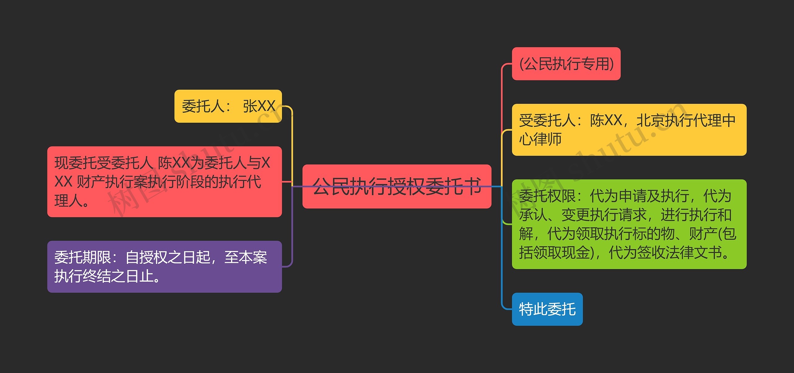 树图思维导图提供《公民执行授权委托书》在线思维导图免费制作,点击“编辑”按钮,可对《公民执行授权委托书》进行在线思维导图编辑,本思维导图属于思维导图模板主题,文件编号是:dfa2780b6ab5a204ee3e484801b7b397