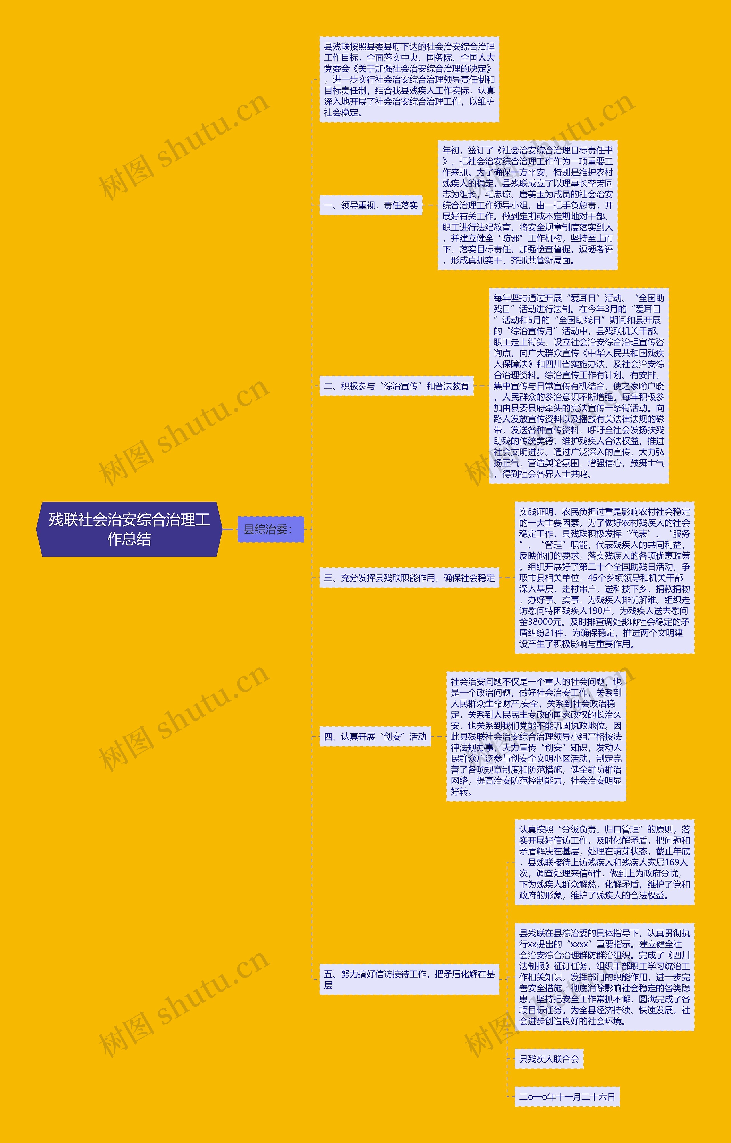 树图思维导图提供《残联社会治安综合治理工作总结》在线思维导图免费制作,点击“编辑”按钮,可对《残联社会治安综合治理工作总结》进行在线思维导图编辑,本思维导图属于思维导图模板主题,文件编号是:4be0c16fc1bd070d3393391fa4658ffa