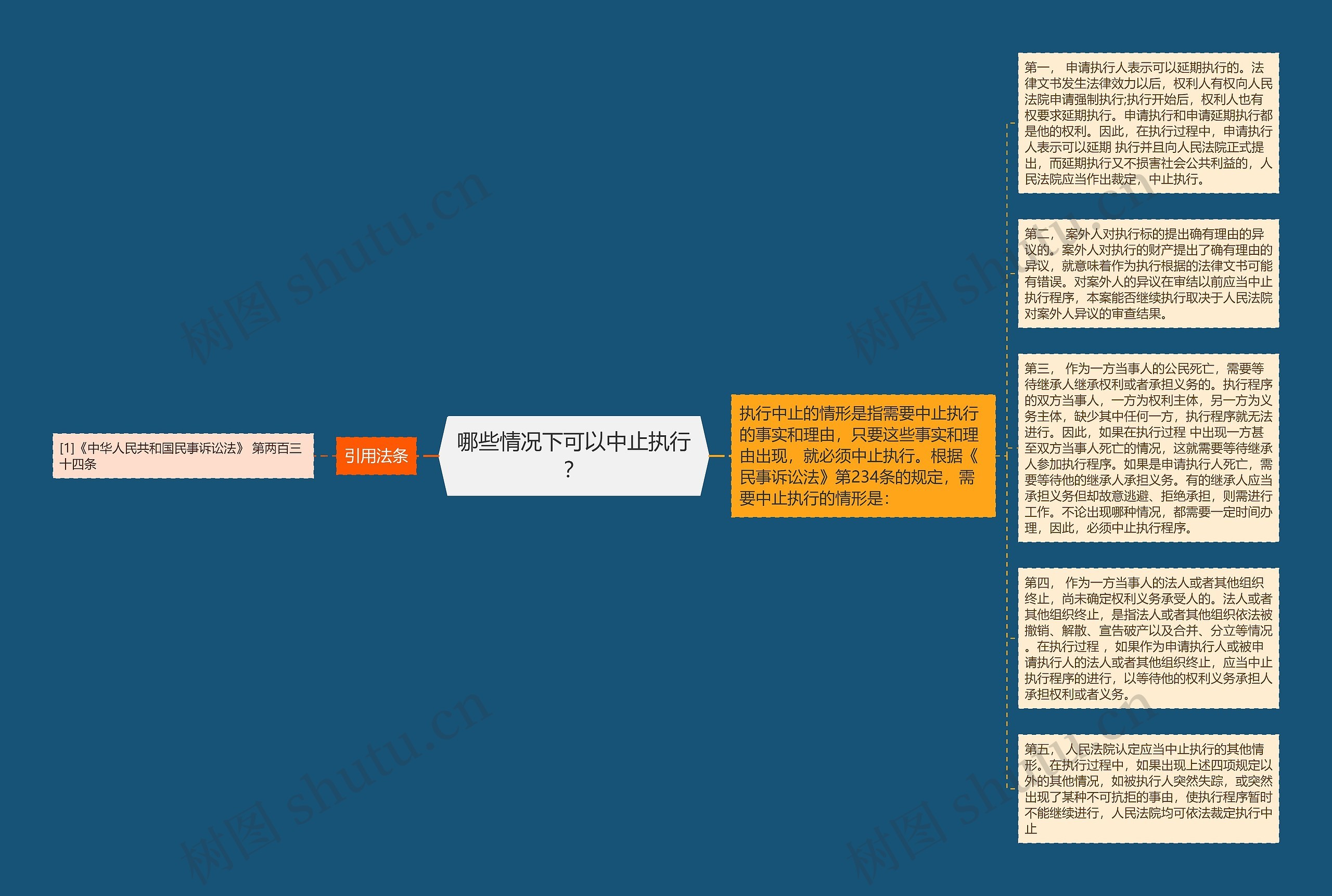 第一, 申请执行人表示可以延期执行的。法律文书发生法律效力以后,权利人有权向人民法院申请强制执行;执行开始后,权利人也有权要求延期执行。申请执行和申请延期执行都是他的权利。因此,在执行过程中,申请执行人表示可以延期 执行并且向人民法院正式提出,而延期执行又不损害社会公共利益的,人民法院应当作出裁定,中止执行。