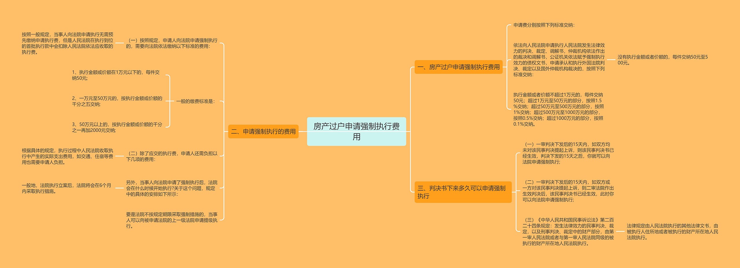 树图思维导图提供《房产过户申请强制执行费用》在线思维导图免费制作,点击“编辑”按钮,可对《房产过户申请强制执行费用》进行在线思维导图编辑,本思维导图属于思维导图模板主题,文件编号是:2084201214f0eae62e181b7bff347591