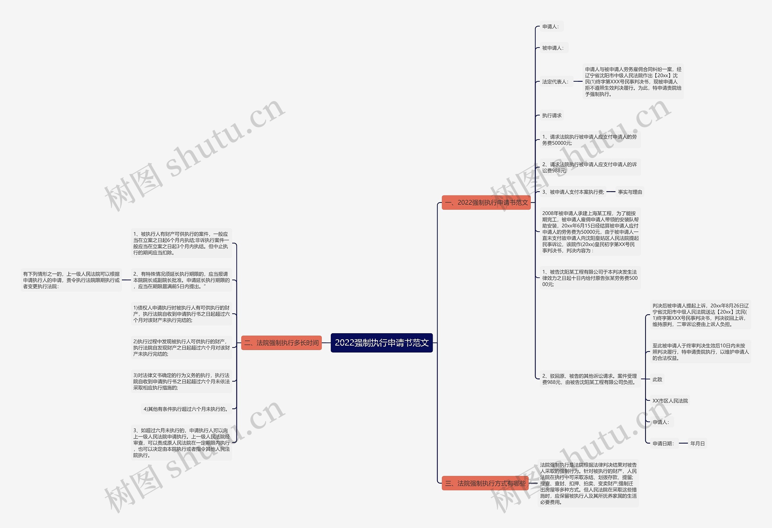 树图思维导图提供《2022强制执行申请书范文》在线思维导图免费制作,点击“编辑”按钮,可对《2022强制执行申请书范文》进行在线思维导图编辑,本思维导图属于思维导图模板主题,文件编号是:72c0a69cb42b18ca89297c638a071738