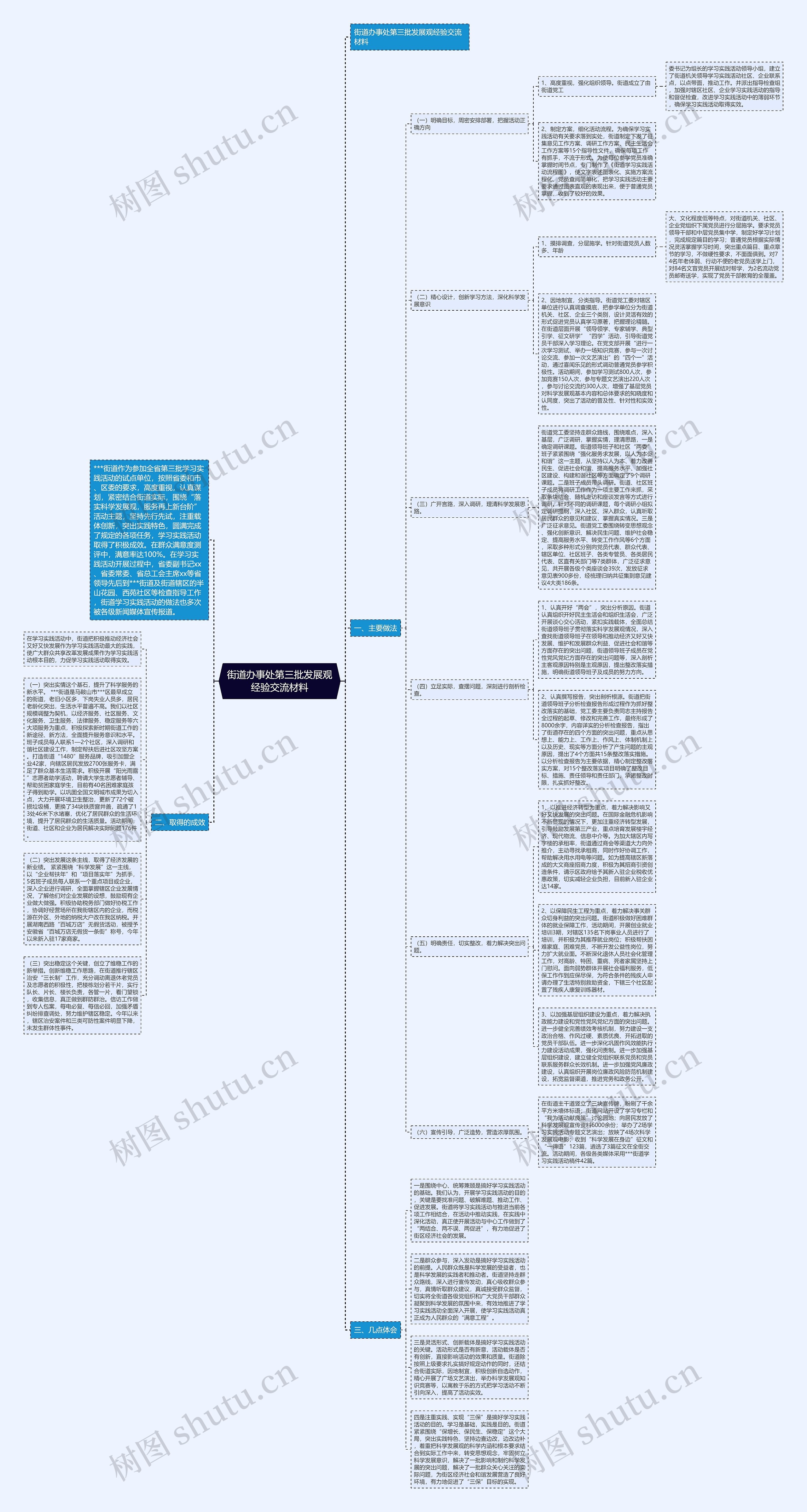 (三)突出稳定这个关键,创立了维稳工作的新举措。创新维稳工作思路,在街道推行辖区治安“三长制”工作,充分调动离退休老党员及志愿者的积极性,把楼栋划分若干片,实行队长、片长、楼长负责,各管一片,看门望锁,收集信息,真正做到群防群治。信访工作做到专人包案,每电必复、每信必回,加强矛盾纠纷排查调处,努力维护辖区稳定。今年以来,辖区治安案件和三类可防性案件明显下降,未发生群体性事件。
