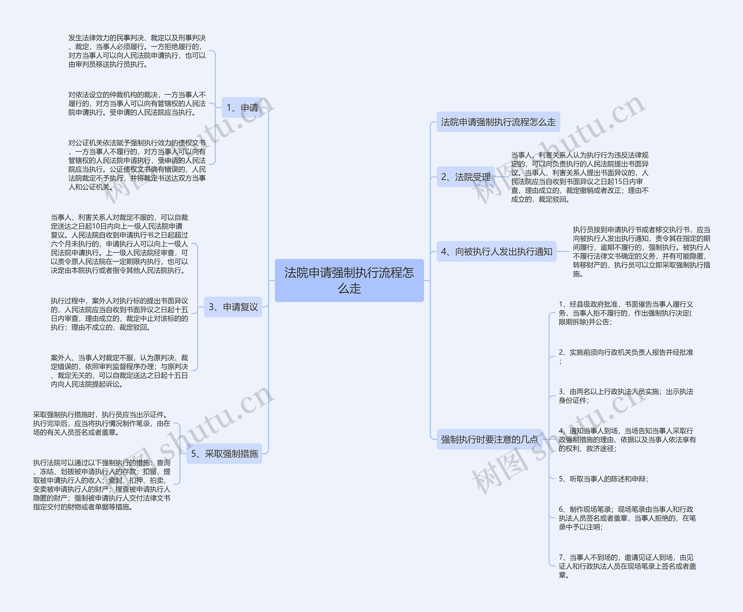 树图思维导图提供《法院申请强制执行流程怎么走》在线思维导图免费制作,点击“编辑”按钮,可对《法院申请强制执行流程怎么走》进行在线思维导图编辑,本思维导图属于思维导图模板主题,文件编号是:a10a3ce7562296c1592caeb9d9a8ec98