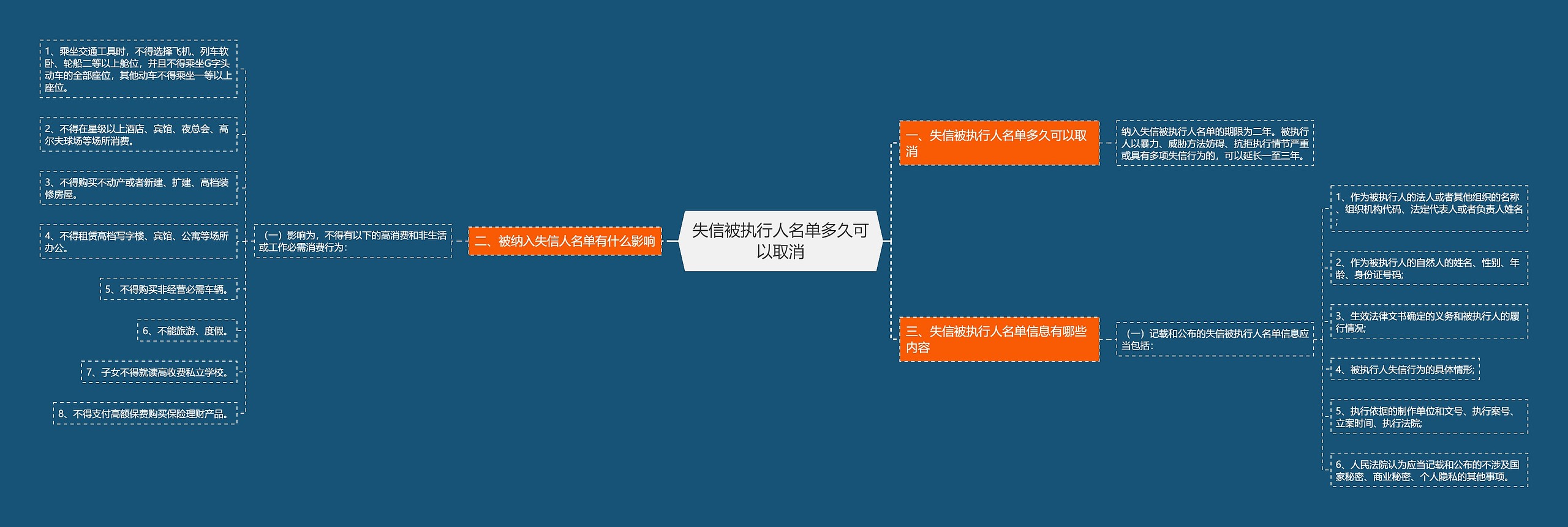 树图思维导图提供《失信被执行人名单多久可以取消》在线思维导图免费制作,点击“编辑”按钮,可对《失信被执行人名单多久可以取消》进行在线思维导图编辑,本思维导图属于思维导图模板主题,文件编号是:c6d5ddd83f461d484d9131b80a3ce2fd