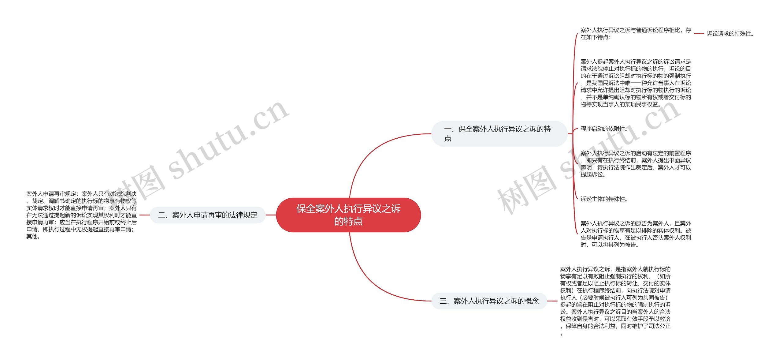 树图思维导图提供《保全案外人执行异议之诉的特点》在线思维导图免费制作,点击“编辑”按钮,可对《保全案外人执行异议之诉的特点》进行在线思维导图编辑,本思维导图属于思维导图模板主题,文件编号是:5b67b847bbeddf07683ee503b6054073