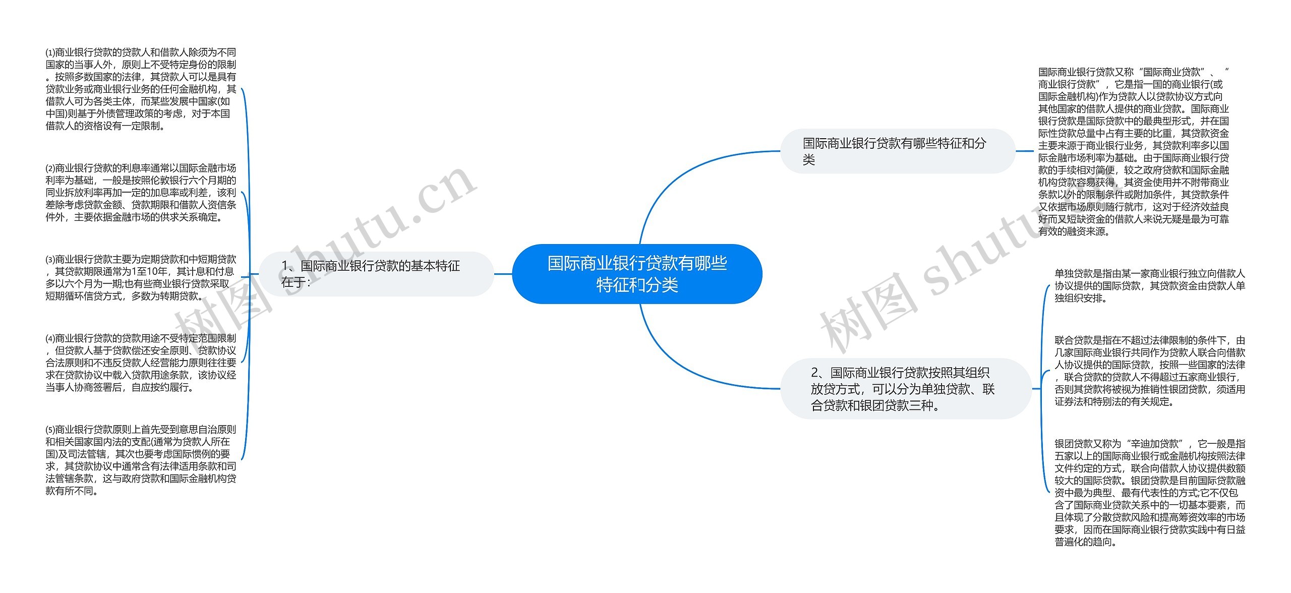 树图思维导图提供《国际商业银行贷款有哪些特征和分类》在线思维导图免费制作,点击“编辑”按钮,可对《国际商业银行贷款有哪些特征和分类》进行在线思维导图编辑,本思维导图属于思维导图模板主题,文件编号是:0f330577c3c7ffd3de6d21af24475557