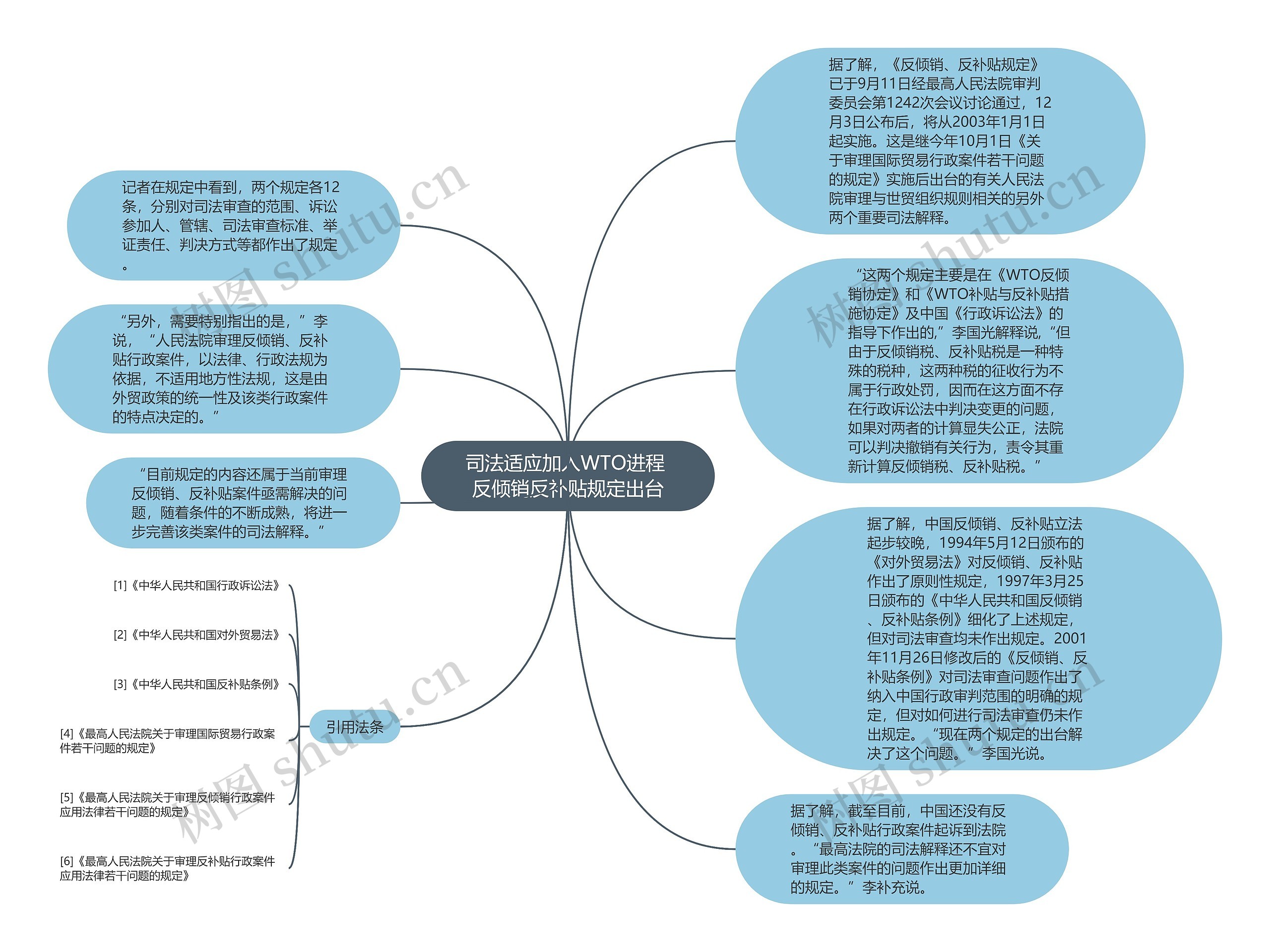 据了解,《反倾销、反补贴规定》已于9月11日经最高人民法院审判委员会第1242次会议讨论通过,12月3日公布后,将从2003年1月1日起实施。这是继今年10月1日《关于审理国际贸易行政案件若干问题的规定》实施后出台的有关人民法院审理与世贸组织规则相关的另外两个重要司法解释。