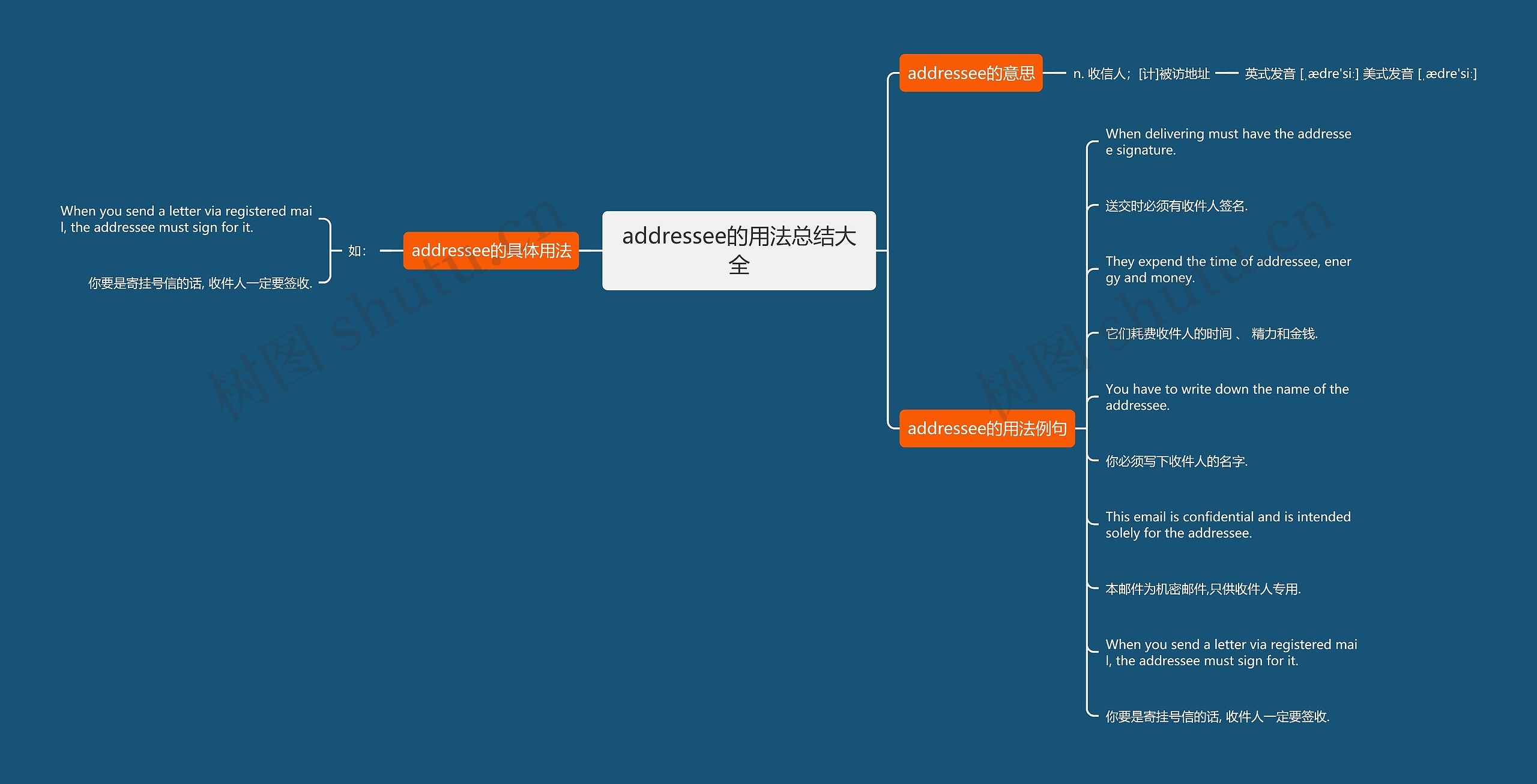 树图思维导图提供《addressee的用法总结大全》在线思维导图免费制作,点击“编辑”按钮,可对《addressee的用法总结大全》进行在线思维导图编辑,本思维导图属于思维导图模板主题,文件编号是:b0adcb4b6653f3b07471cb2aa123761b