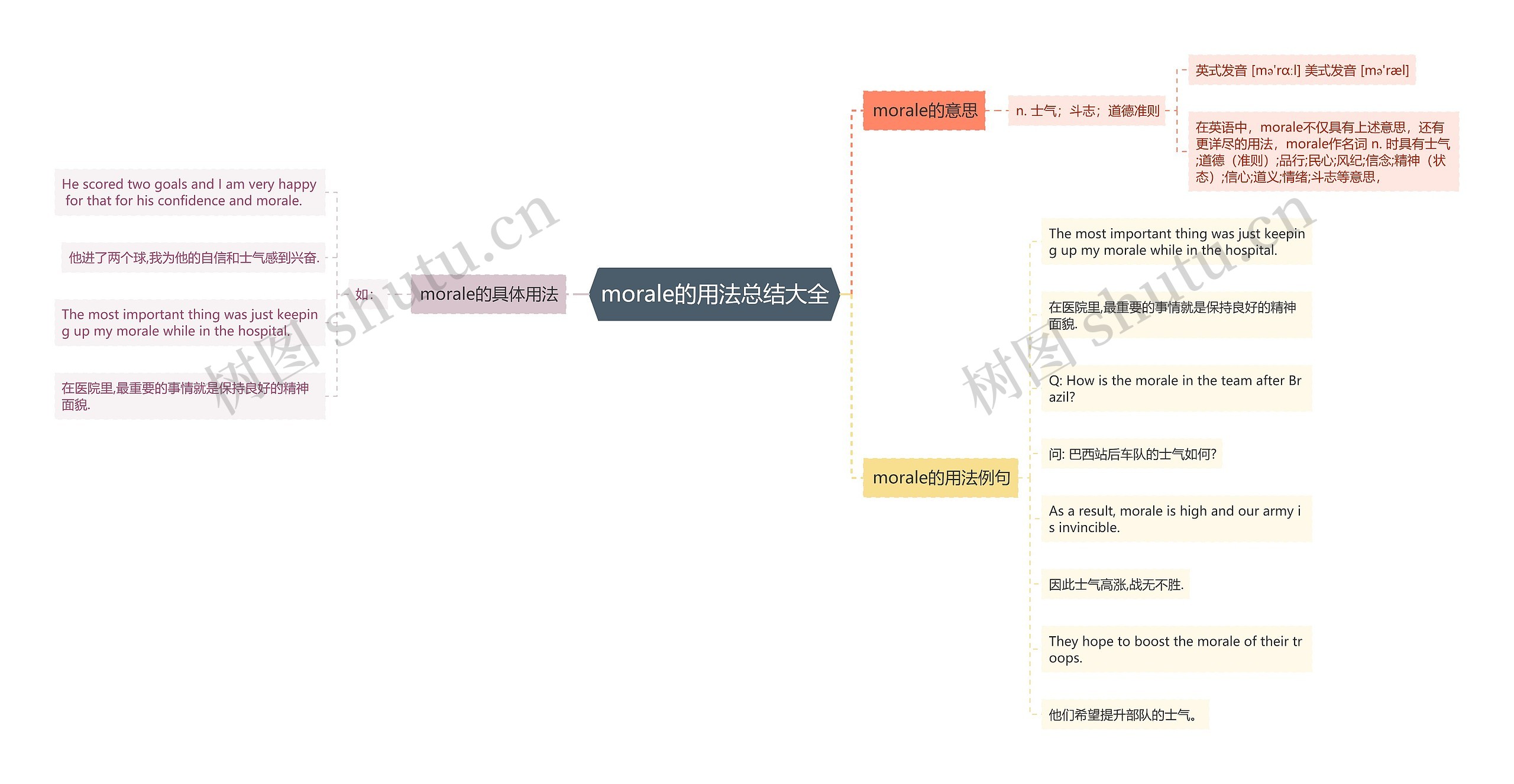 树图思维导图提供《morale的用法总结大全》在线思维导图免费制作,点击“编辑”按钮,可对《morale的用法总结大全》进行在线思维导图编辑,本思维导图属于思维导图模板主题,文件编号是:ed633de0427e519b8849d3cdf3de7c9b