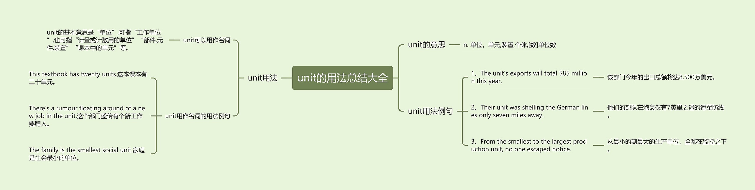 树图思维导图提供《unit的用法总结大全》在线思维导图免费制作,点击“编辑”按钮,可对《unit的用法总结大全》进行在线思维导图编辑,本思维导图属于思维导图模板主题,文件编号是:226e1e36f98ff616382ff7c4ad5441a3