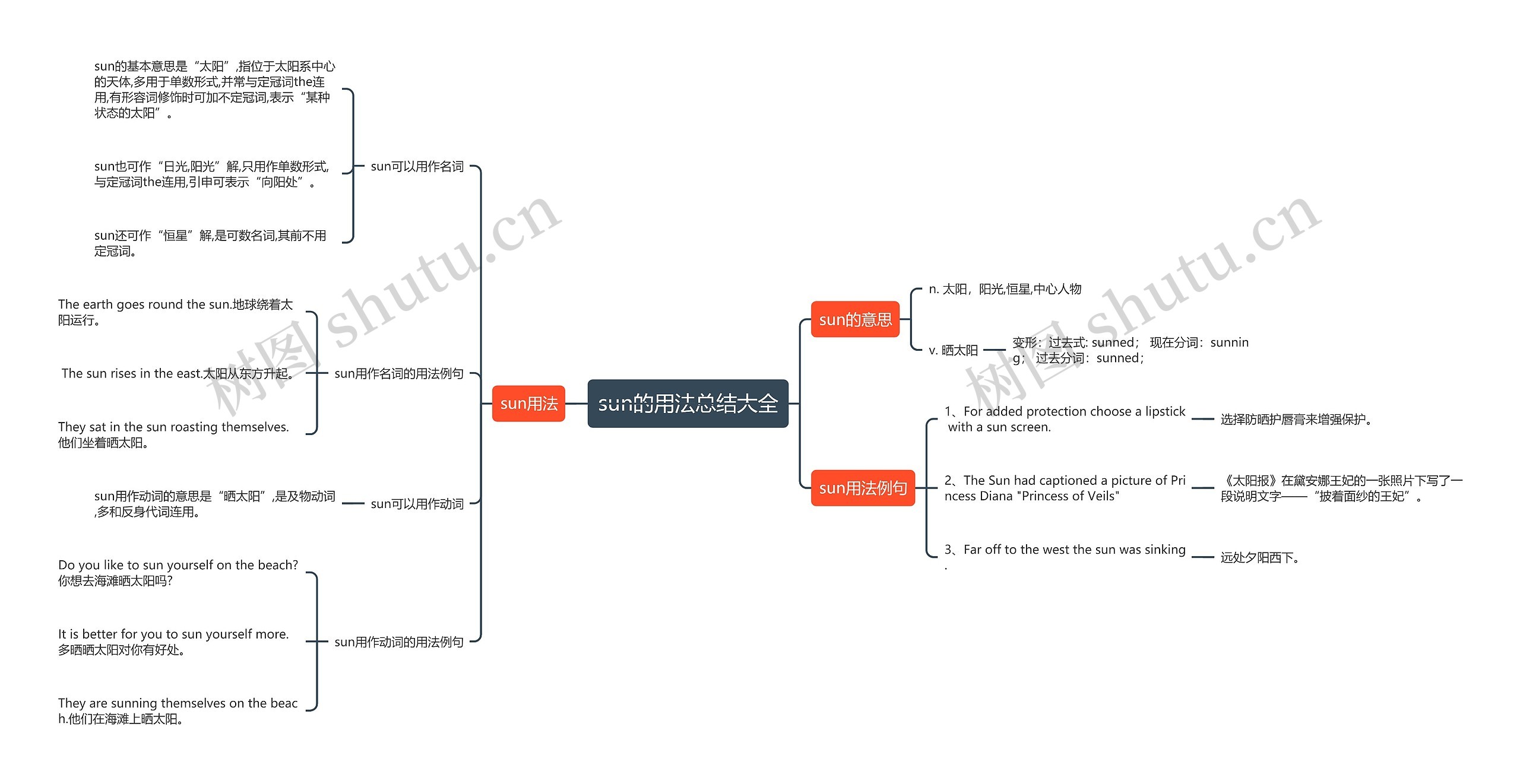 树图思维导图提供《sun的用法总结大全》在线思维导图免费制作,点击“编辑”按钮,可对《sun的用法总结大全》进行在线思维导图编辑,本思维导图属于思维导图模板主题,文件编号是:7fd7810cfdcba24c2e78931dea863639