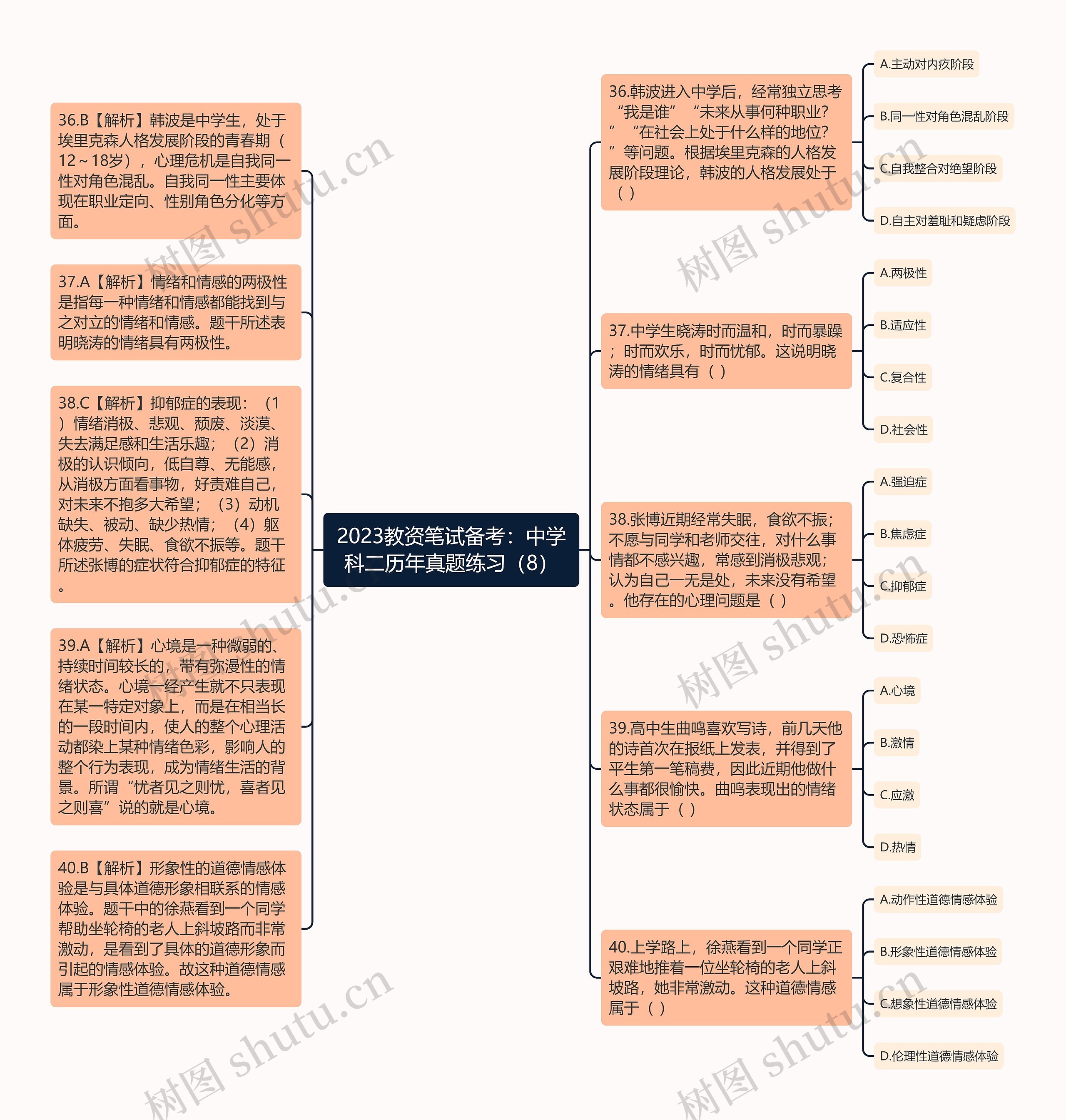 37.A【解析】情绪和情感的两极性是指每一种情绪和情感都能找到与之对立的情绪和情感。题干所述表明晓涛的情绪具有两极性。