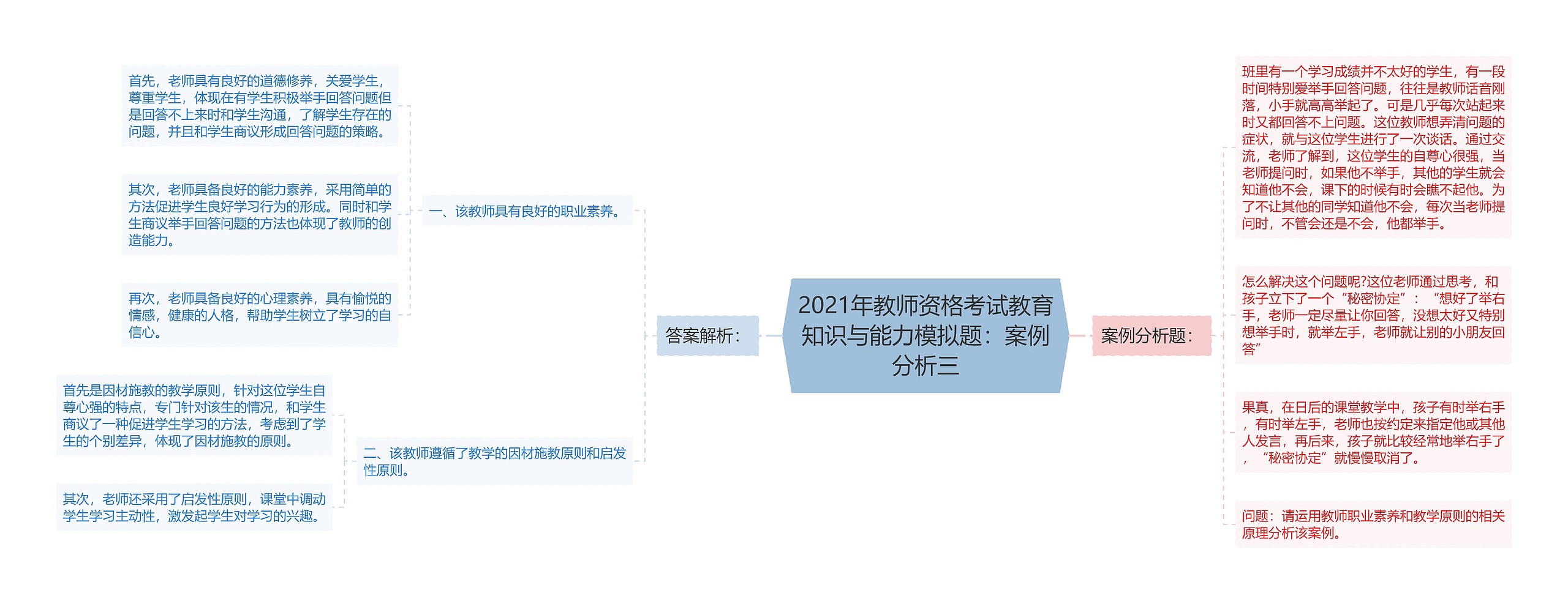 树图思维导图提供《2021年教师资格考试教育知识与能力模拟题:案例分析三》在线思维导图免费制作,点击“编辑”按钮,可对《2021年教师资格考试教育知识与能力模拟题:案例分析三》进行在线思维导图编辑,本思维导图属于思维导图模板主题,文件编号是:12f42a1221b52a113874869a7696ca16