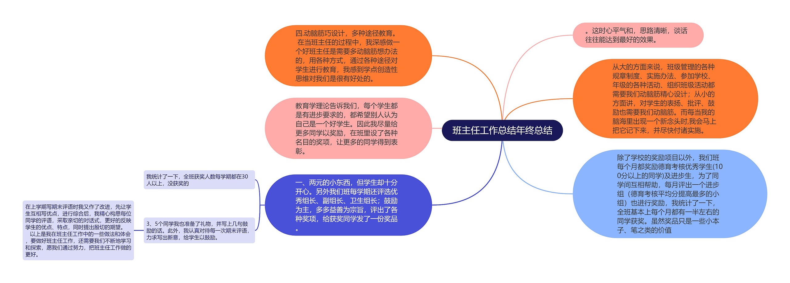 在上学期写期末评语时我又作了改进,先让学生互相写优点,进行综合后,我精心构思每位同学的评语,采取亲切的对话式,更好的反映学生的优点、特点,同时提出殷切的期望。 以上是我在班主任工作中的一些做法和体会,要做好班主任工作,还需要我们不断地学习和探索,愿我们通过努力,把班主任工作做的更好。
