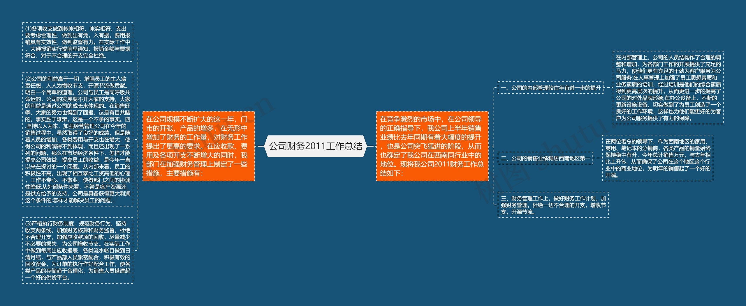 树图思维导图提供《公司财务2011工作总结》在线思维导图免费制作,点击“编辑”按钮,可对《公司财务2011工作总结》进行在线思维导图编辑,本思维导图属于思维导图模板主题,文件编号是:28007a5ca451fb02a73307c5a0df4a34