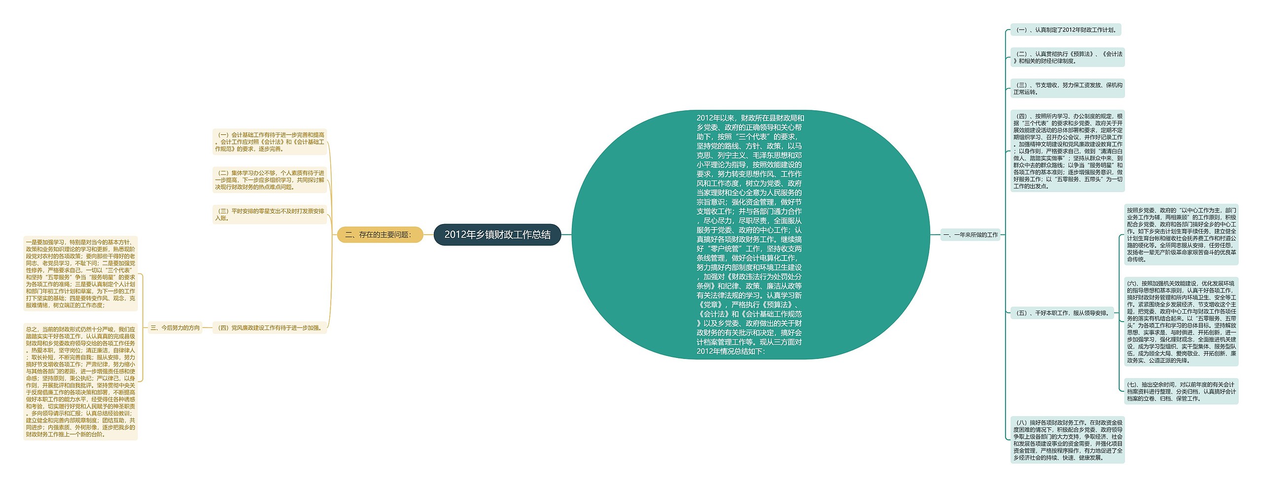 树图思维导图提供《2012年乡镇财政工作总结》在线思维导图免费制作,点击“编辑”按钮,可对《2012年乡镇财政工作总结》进行在线思维导图编辑,本思维导图属于思维导图模板主题,文件编号是:9f700f83cfc5d86e7e30e6114372b8a1