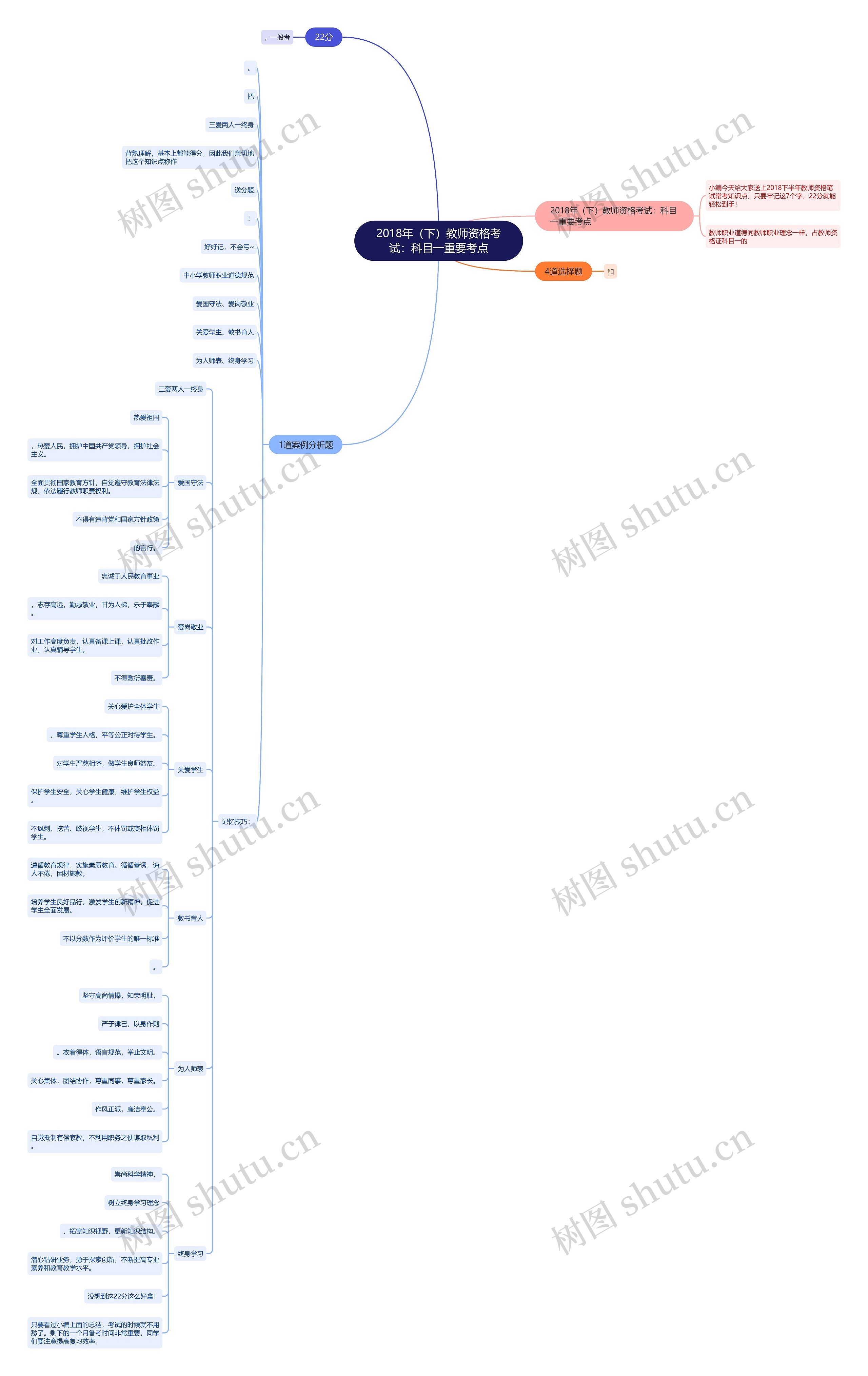树图思维导图提供《2018年(下)教师资格考试:科目一重要考点》在线思维导图免费制作,点击“编辑”按钮,可对《2018年(下)教师资格考试:科目一重要考点》进行在线思维导图编辑,本思维导图属于思维导图模板主题,文件编号是:8532843cba62320ddbc9c7f5bd5ce0e9