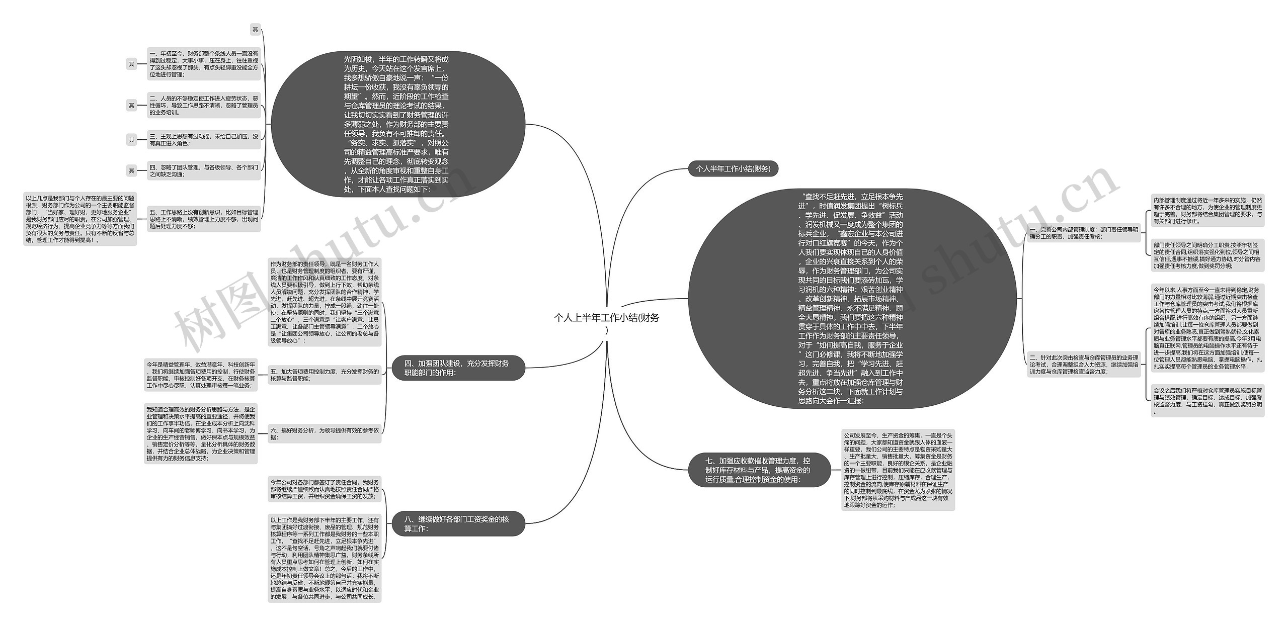 树图思维导图提供《个人上半年工作小结(财务)》在线思维导图免费制作,点击“编辑”按钮,可对《个人上半年工作小结(财务)》进行在线思维导图编辑,本思维导图属于思维导图模板主题,文件编号是:6d61506500d9c8a7428d4216701fc148