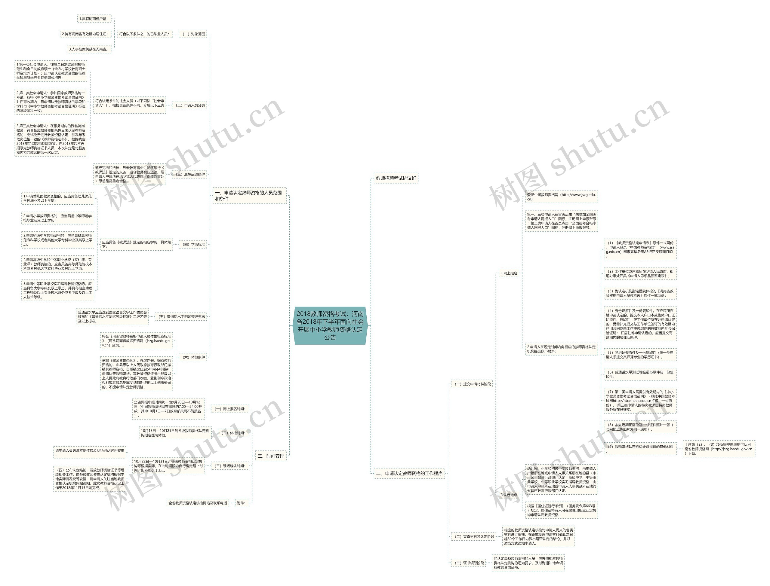 树图思维导图提供《2018教师资格考试:河南省2018年下半年面向社会开展中小学教师资格认定公告》在线思维导图免费制作,点击“编辑”按钮,可对《2018教师资格考试:河南省2018年下半年面向社会开展中小学教师资格认定公告》进行在线思维导图编辑,本思维导图属于思维导图模板主题,文件编号是:59f85d371641911b21aa9fba618d993d