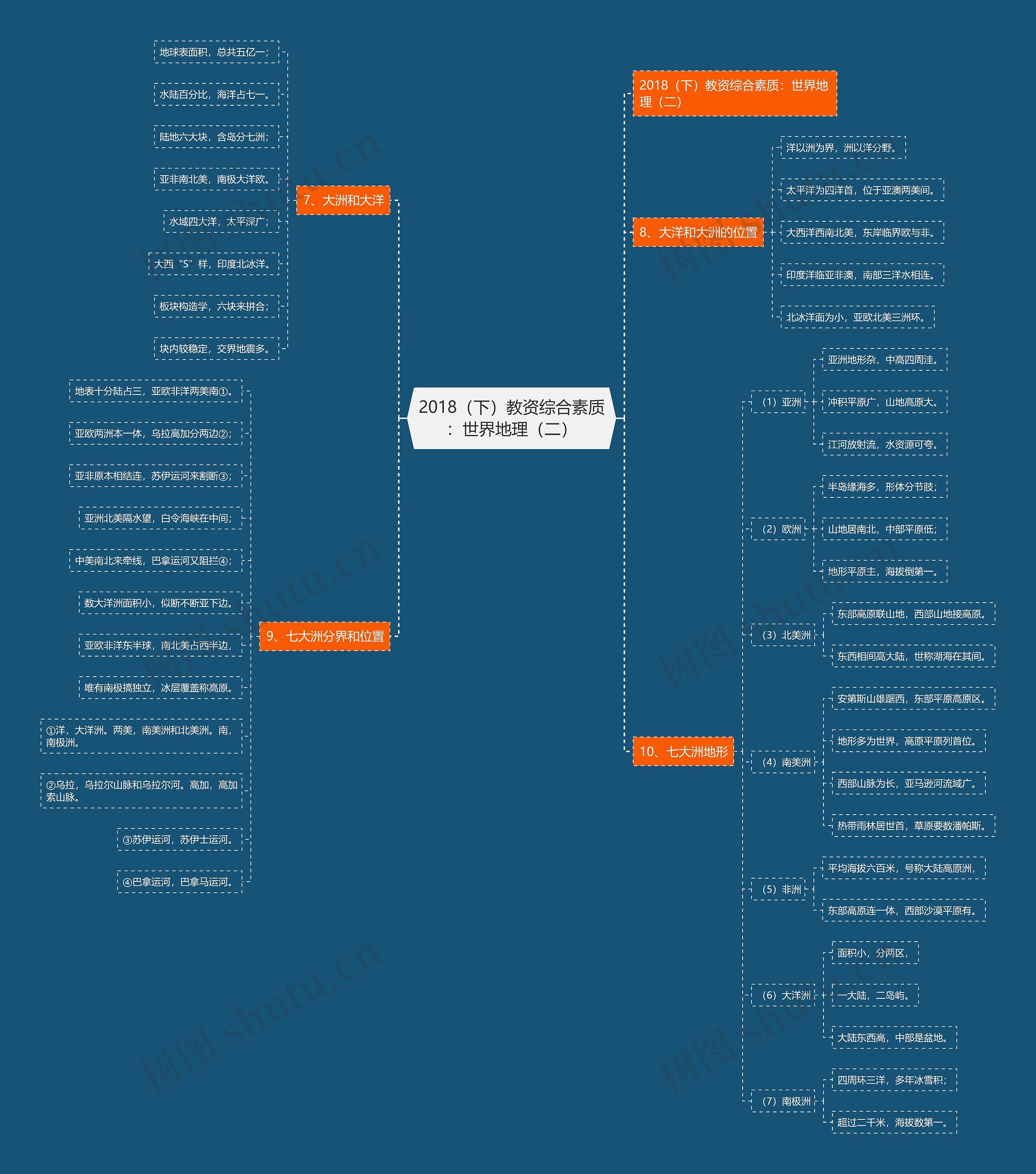 树图思维导图提供《2018(下)教资综合素质:世界地理(二)》在线思维导图免费制作,点击“编辑”按钮,可对《2018(下)教资综合素质:世界地理(二)》进行在线思维导图编辑,本思维导图属于思维导图模板主题,文件编号是:5ec2069e2ddbb7ac84dc32c39496f394