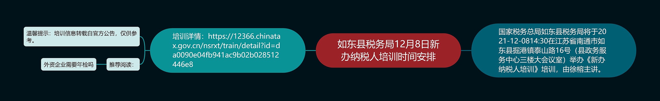 树图思维导图提供《如东县税务局12月8日新办纳税人培训时间安排》在线思维导图免费制作,点击“编辑”按钮,可对《如东县税务局12月8日新办纳税人培训时间安排》进行在线思维导图编辑,本思维导图属于思维导图模板主题,文件编号是:68aadc8383cb304e5705878cf7692845