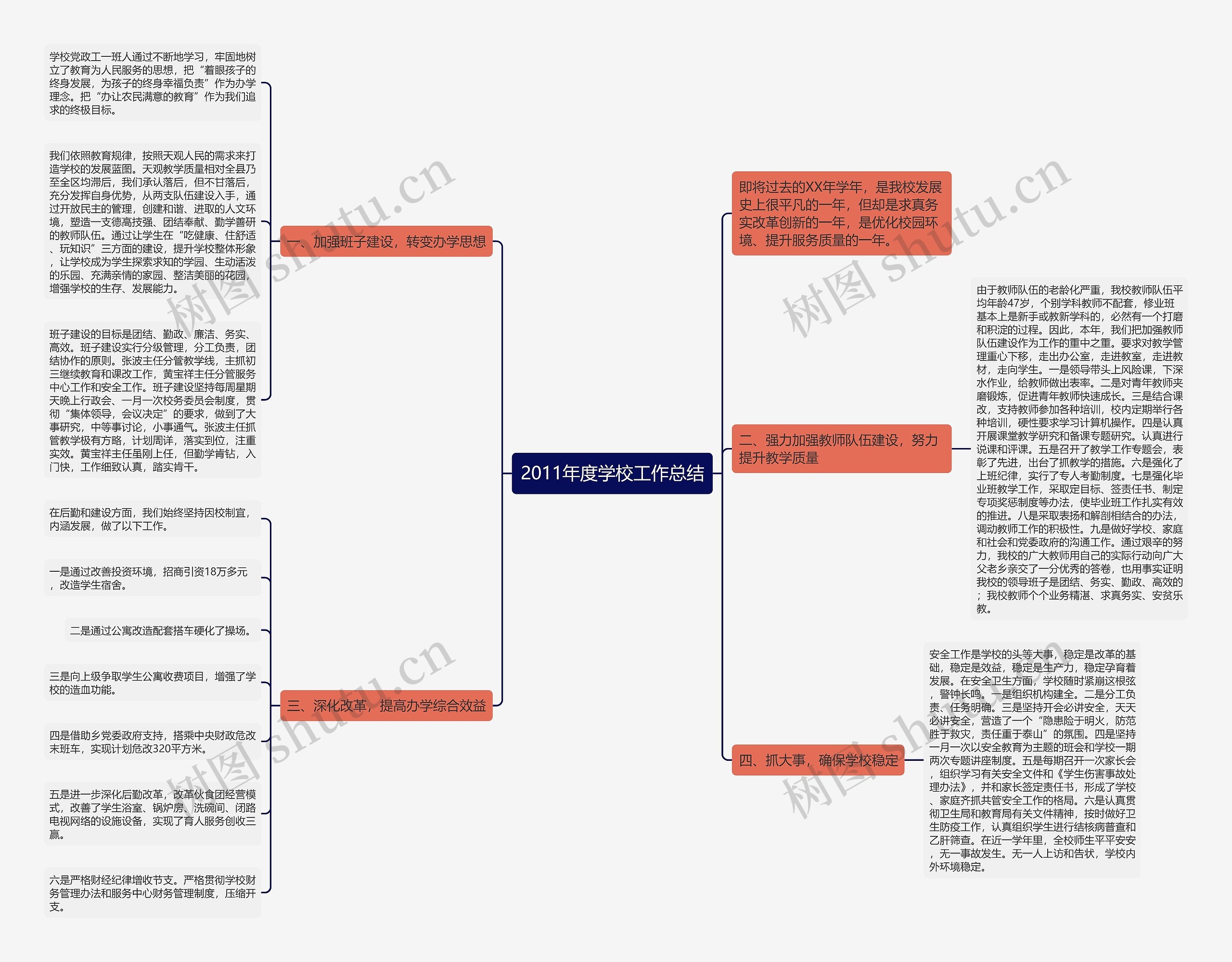 树图思维导图提供《2011年度学校工作总结》在线思维导图免费制作,点击“编辑”按钮,可对《2011年度学校工作总结》进行在线思维导图编辑,本思维导图属于思维导图模板主题,文件编号是:9c5da018ab8574cbbeb64ddf3f2a7cf1