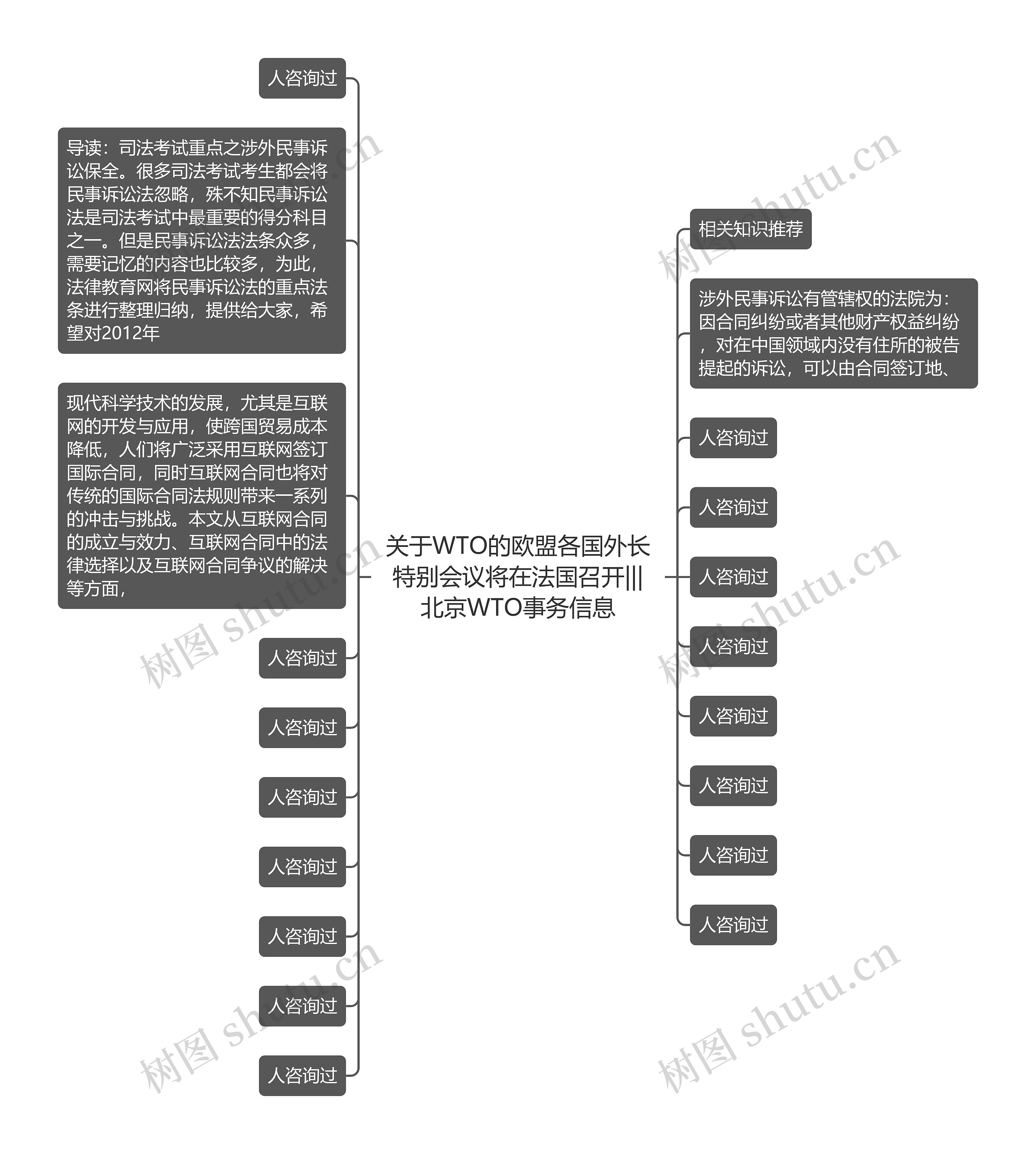 树图思维导图提供《关于WTO的欧盟各国外长特别会议将在法国召开|||北京WTO事务信息》在线思维导图免费制作,点击“编辑”按钮,可对《关于WTO的欧盟各国外长特别会议将在法国召开|||北京WTO事务信息》进行在线思维导图编辑,本思维导图属于思维导图模板主题,文件编号是:803bb07d30805955ef2c99bd73a297ab
