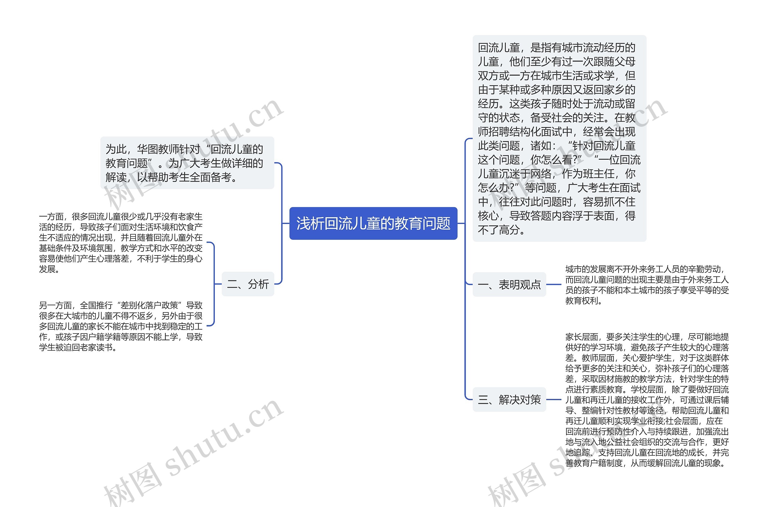 树图思维导图提供《浅析回流儿童的教育问题》在线思维导图免费制作,点击“编辑”按钮,可对《浅析回流儿童的教育问题》进行在线思维导图编辑,本思维导图属于思维导图模板主题,文件编号是:11d4b2d0ae5691b6550584b1f7f8ac74