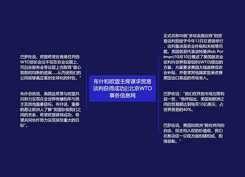 欧盟贸易专员曼德尔森将与来自澳大利亚、巴西、印度、日本以及美国的谈判对手在伦敦举行为期两天的磋商。他在第一天的会议后表示,‘没有重大突破,但我们在多方面取得进展’。他在评价11日的会晤时称,‘到目前为止会议进行得很好,可了解谈判中各方的可能性与底限在哪里’,他并形容这项会议‘具有建设性’。