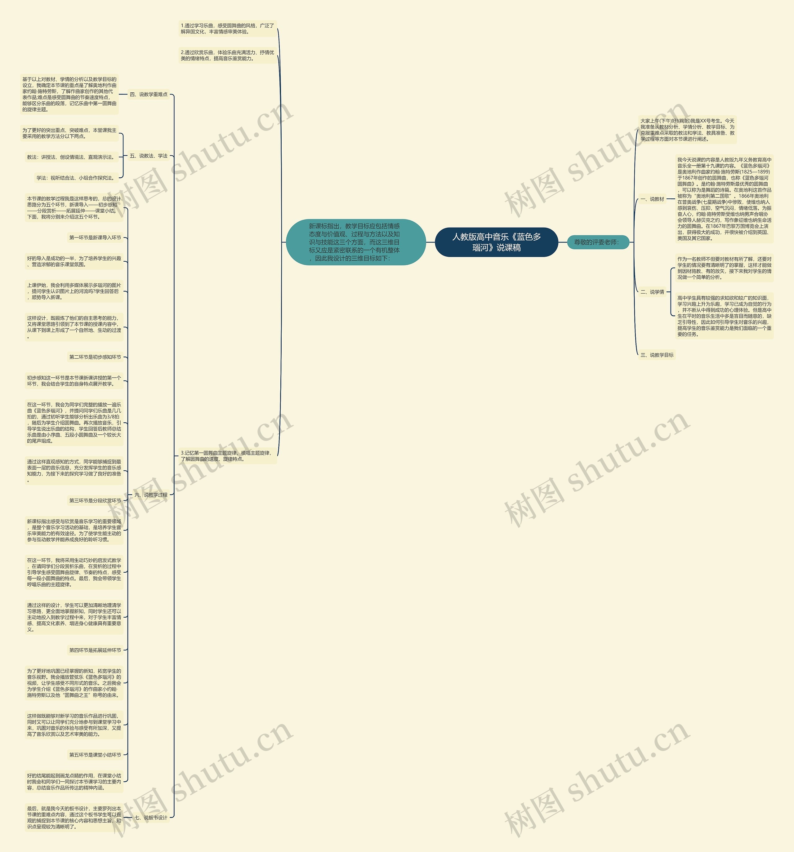 在这一环节,我会为同学们完整的播放一遍乐曲《蓝色多瑙河》,并提问同学们乐曲是几几拍的,通过初听学生能够分析出乐曲为3/8拍,随后为学生介绍圆舞曲。再次播放音乐,引导学生说出乐曲的结构,学生回答后教师总结乐曲是由小序曲、五段小圆舞曲及一个较长大的尾声组成。