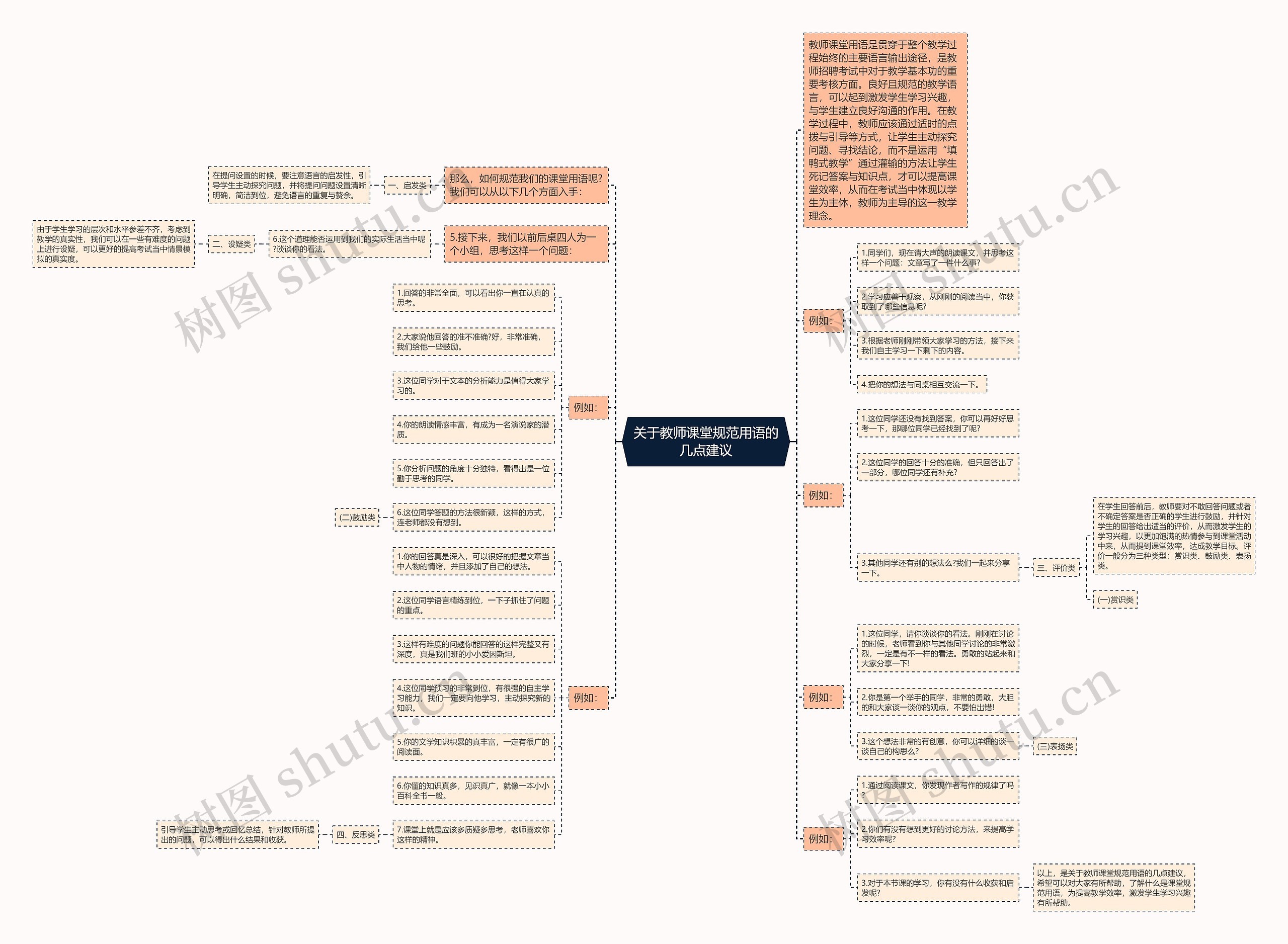 树图思维导图提供《关于教师课堂规范用语的几点建议》在线思维导图免费制作,点击“编辑”按钮,可对《关于教师课堂规范用语的几点建议》进行在线思维导图编辑,本思维导图属于思维导图模板主题,文件编号是:2e292341a57dcc424f12222412290eac