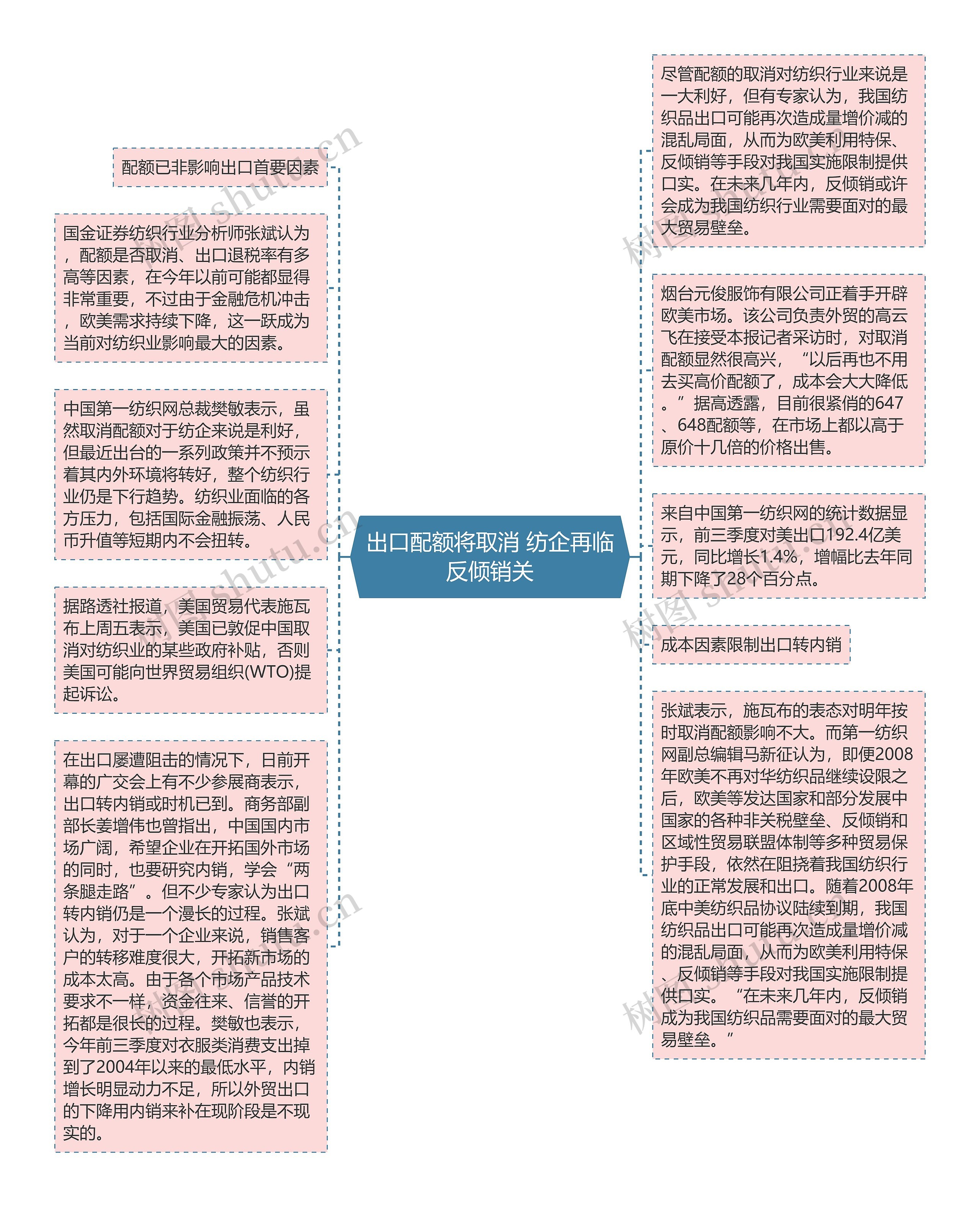 张斌表示,施瓦布的表态对明年按时取消配额影响不大。而第一纺织网副总编辑马新征认为,即便2008年欧美不再对华纺织品继续设限之后,欧美等发达国家和部分发展中国家的各种非关税壁垒、反倾销和区域性贸易联盟体制等多种贸易保护手段,依然在阻挠着我国纺织行业的正常发展和出口。随着2008年底中美纺织品协议陆续到期,我国纺织品出口可能再次造成量增价减的混乱局面,从而为欧美利用特保、反倾销等手段对我国实施限制提供口实。“在未来几年内,反倾销成为我国纺织品需要面对的最大贸易壁垒。”