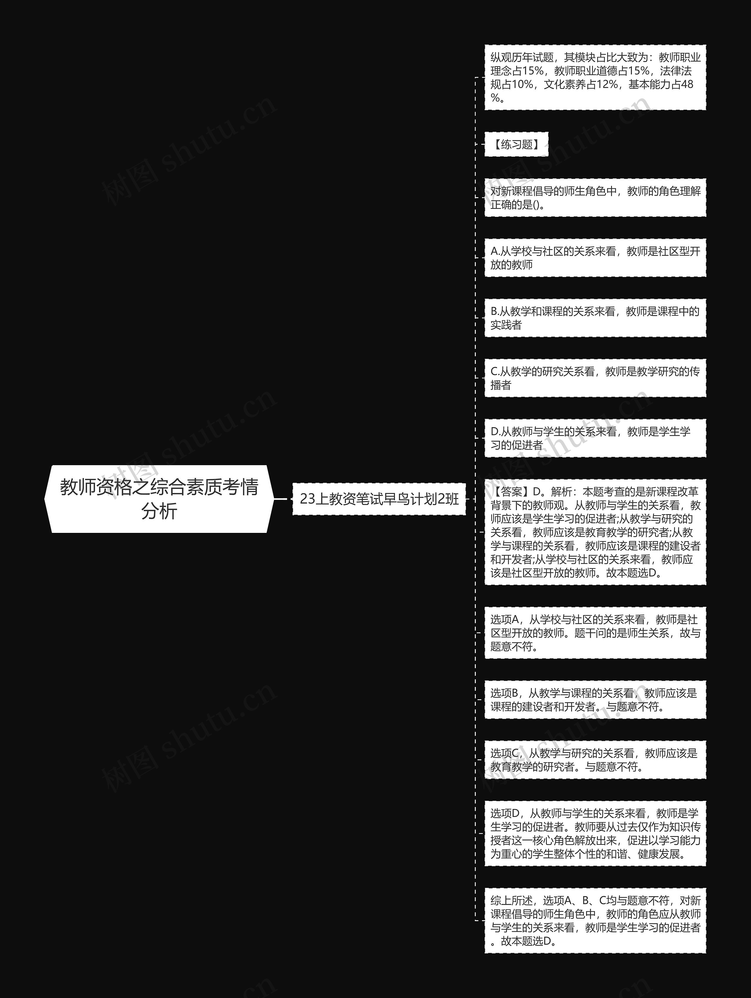 【答案】D。解析:本题考查的是新课程改革背景下的教师观。从教师与学生的关系看,教师应该是学生学习的促进者;从教学与研究的关系看,教师应该是教育教学的研究者;从教学与课程的关系看,教师应该是课程的建设者和开发者;从学校与社区的关系来看,教师应该是社区型开放的教师。故本题选D。