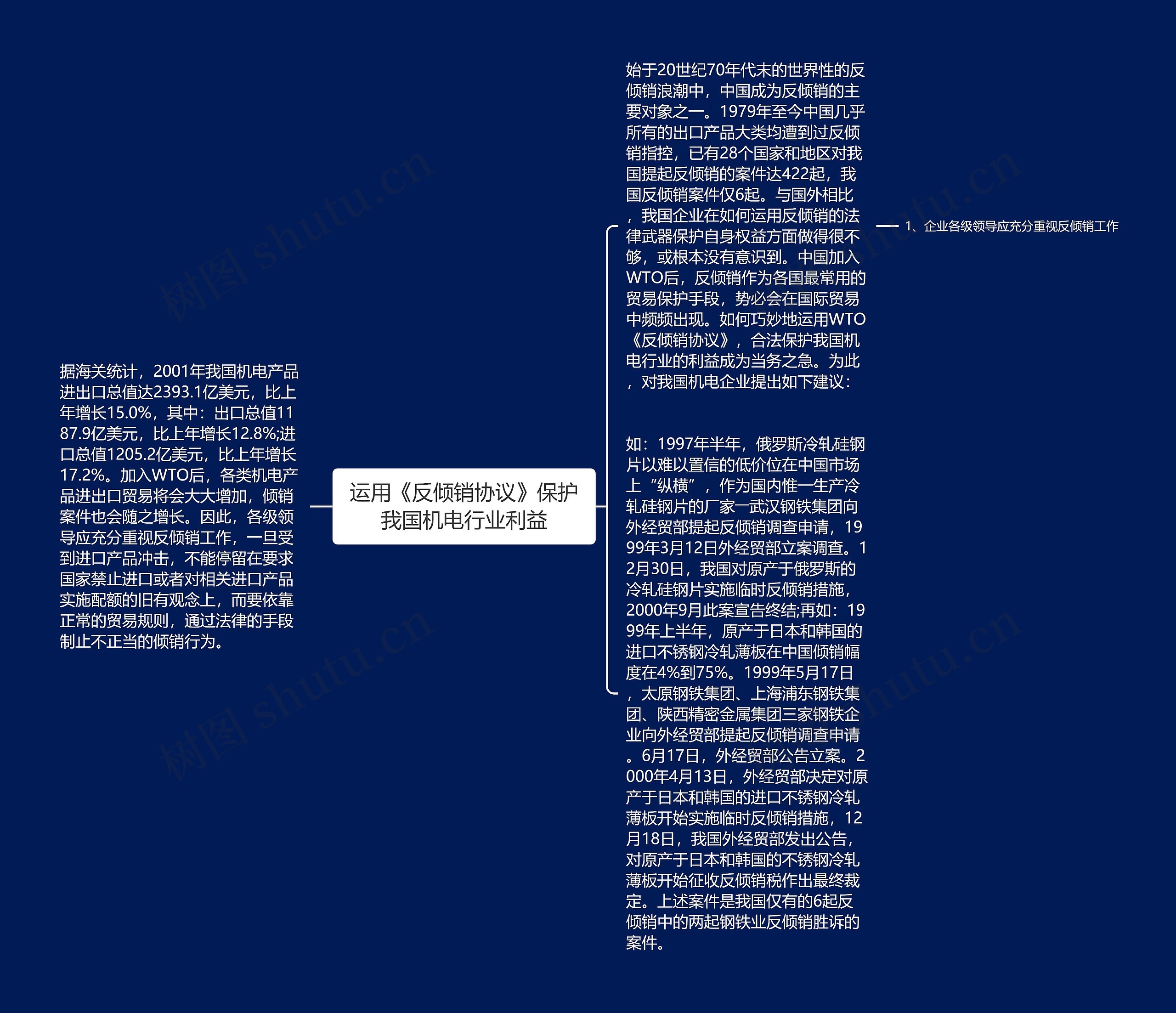 始于20世纪70年代末的世界性的反倾销浪潮中,中国成为反倾销的主要对象之一。1979年至今中国几乎所有的出口产品大类均遭到过反倾销指控,已有28个国家和地区对我国提起反倾销的案件达422起,我国反倾销案件仅6起。与国外相比,我国企业在如何运用反倾销的法律武器保护自身权益方面做得很不够,或根本没有意识到。中国加入WTO后,反倾销作为各国最常用的贸易保护手段,势必会在国际贸易中频频出现。如何巧妙地运用WTO《反倾销协议》,合法保护我国机电行业的利益成为当务之急。为此,对我国机电企业提出如下建议: