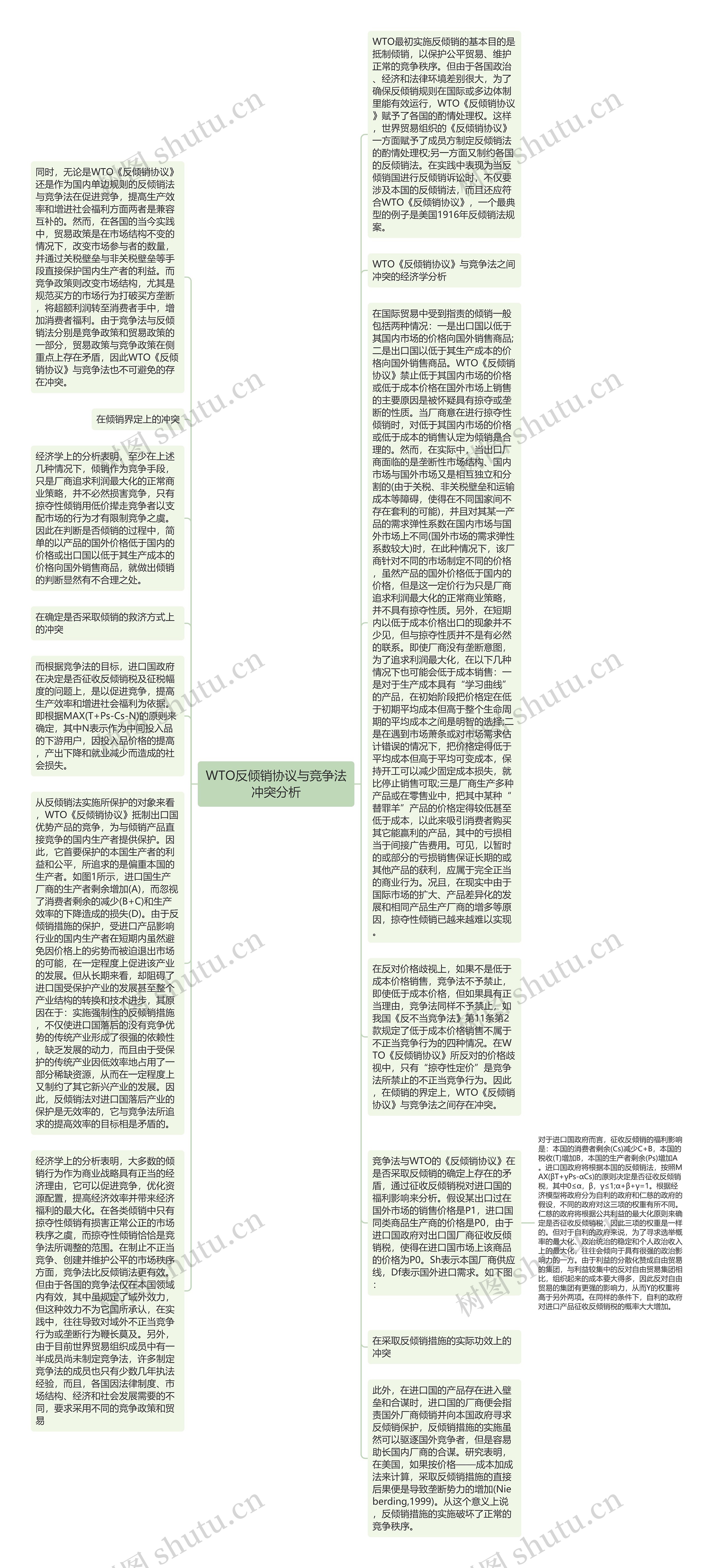 经济学上的分析表明,大多数的倾销行为作为商业战略具有正当的经济理由,它可以促进竞争,优化资源配置,提高经济效率并带来经济福利的最大化。在各类倾销中只有掠夺性倾销有损害正常公正的市场秩序之虞,而掠夺性倾销恰恰是竞争法所调整的范围。在制止不正当竞争、创建并维护公平的市场秩序方面,竞争法比反倾销法更有效。但由于各国的竞争法仅在本国领域内有效,其中虽规定了域外效力,但这种效力不为它国所承认,在实践中,往往导致对域外不正当竞争行为或垄断行为鞭长莫及。另外,由于目前世界贸易组织成员中有一半成员尚未制定竞争法,许多制定竞争法的成员也只有少数几年执法经验,而且,各国因法律制度、市场结构、经济和社会发展需要的不同,要求采用不同的竞争政策和贸易