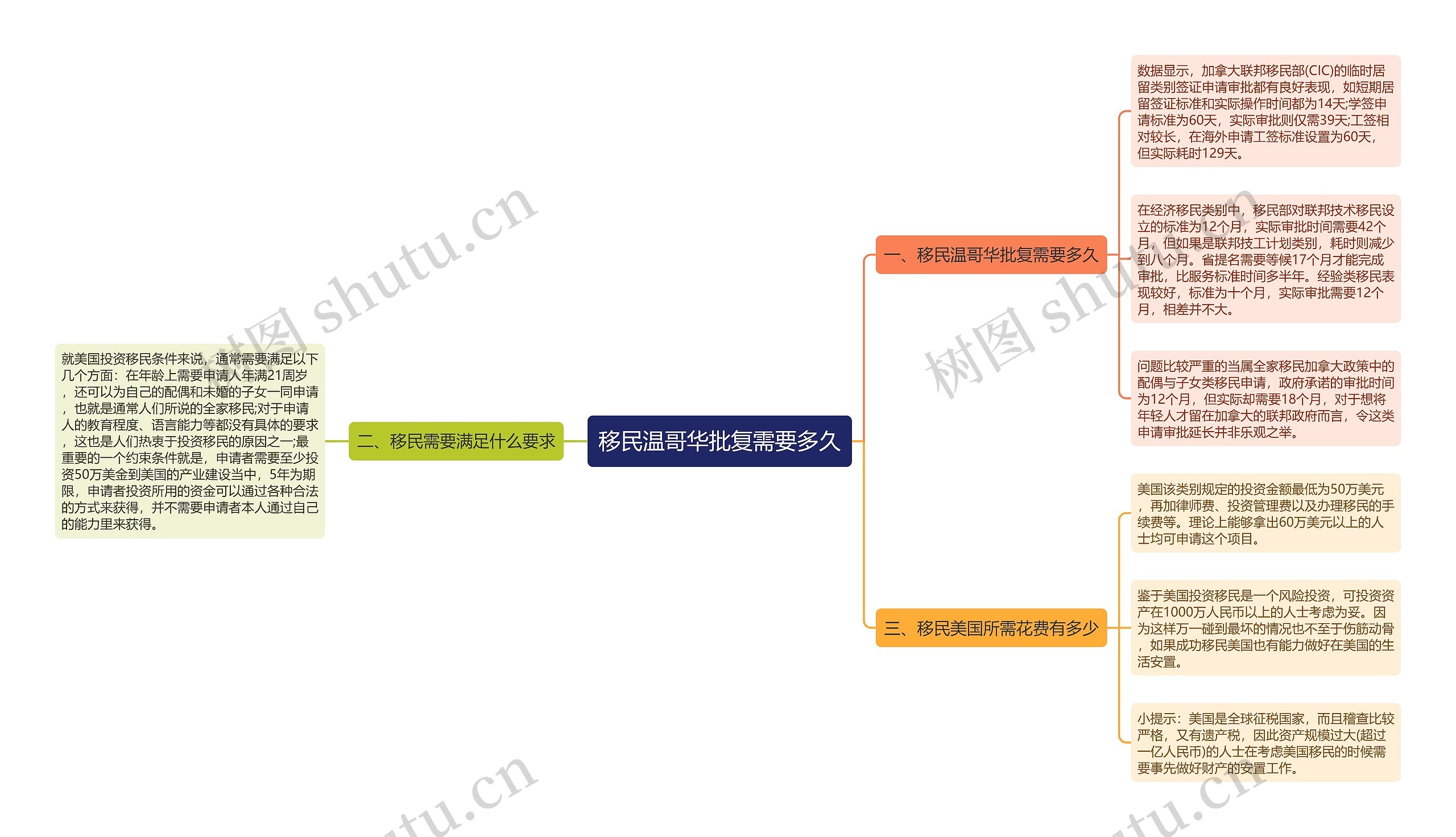 树图思维导图提供《移民温哥华批复需要多久》在线思维导图免费制作,点击“编辑”按钮,可对《移民温哥华批复需要多久》进行在线思维导图编辑,本思维导图属于思维导图模板主题,文件编号是:a754798d4c58be9d15ca6b30365f01f0