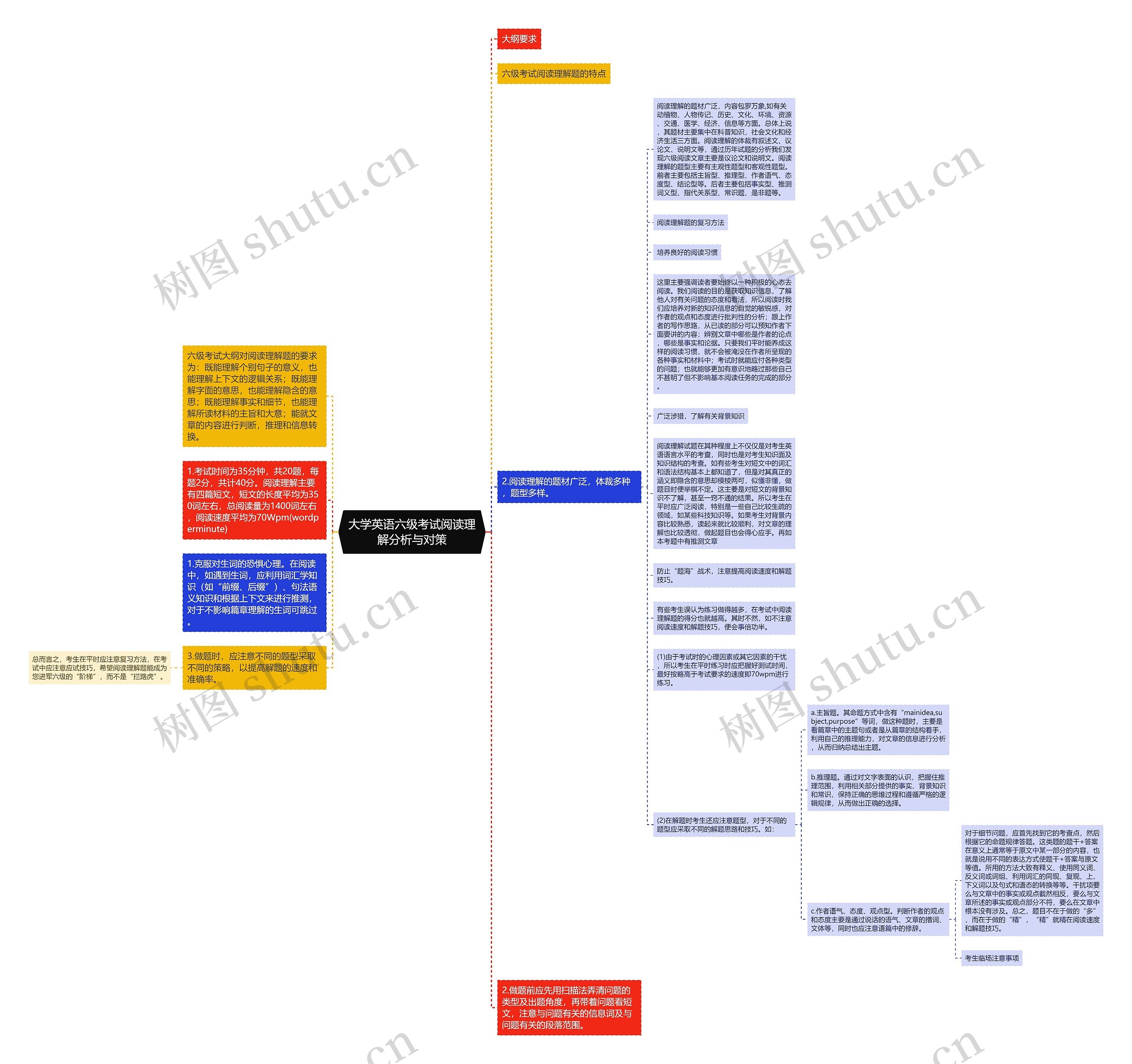 阅读理解的题材广泛,内容包罗万象,如有关动植物、人物传记、历史、文化、环境、资源、交通、医学、经济、信息等方面。总体上说,其题材主要集中在科普知识,社会文化和经济生活三方面。阅读理解的体裁有叙述文、议论文、说明文等,通过历年试题的分析我们发现六级阅读文章主要是议论文和说明文。阅读理解的题型主要有主观性题型和客观性题型。前者主要包括主旨型、推理型、作者语气、态度型、结论型等。后者主要包括事实型、推测词义型、指代关系型、常识题、是非题等。